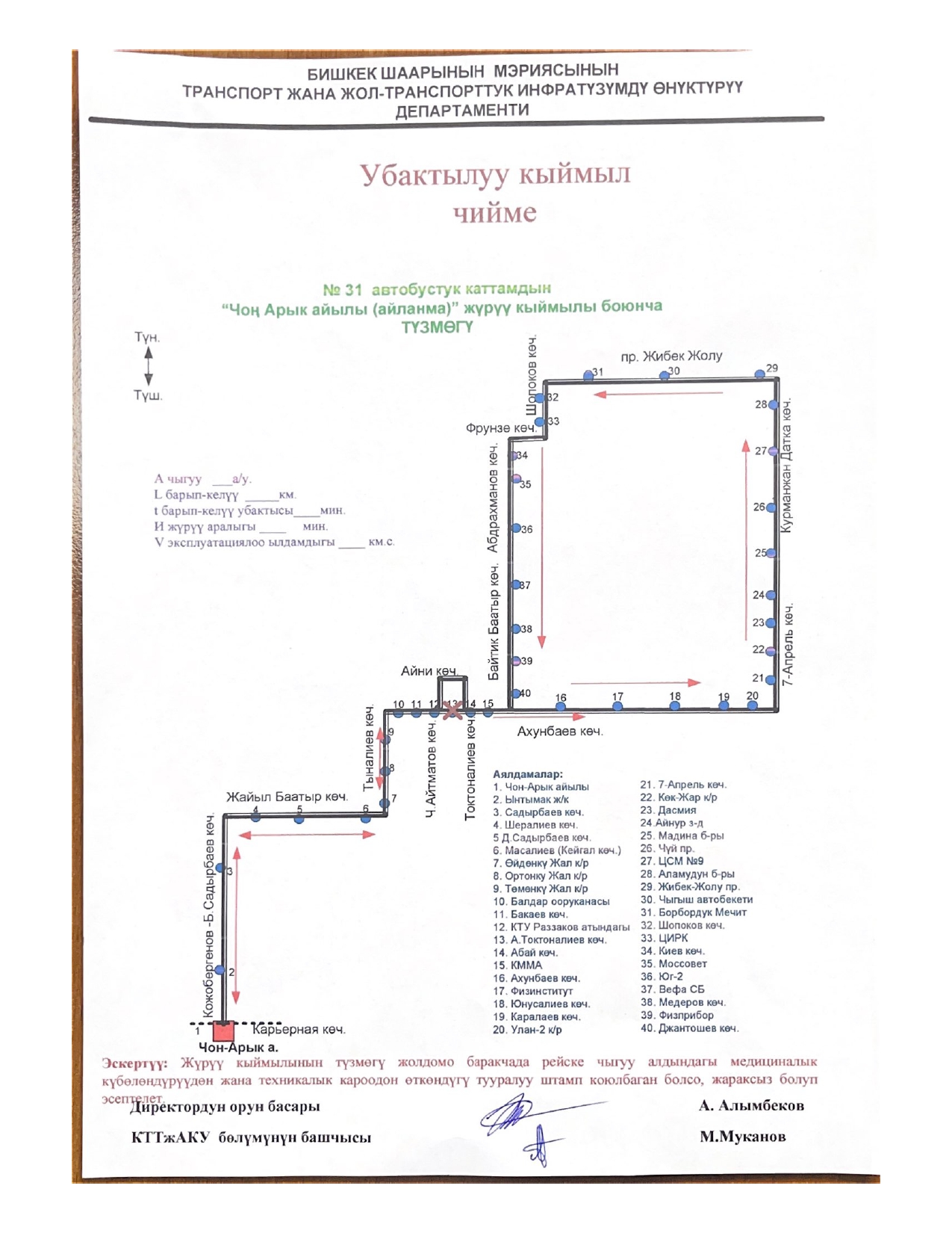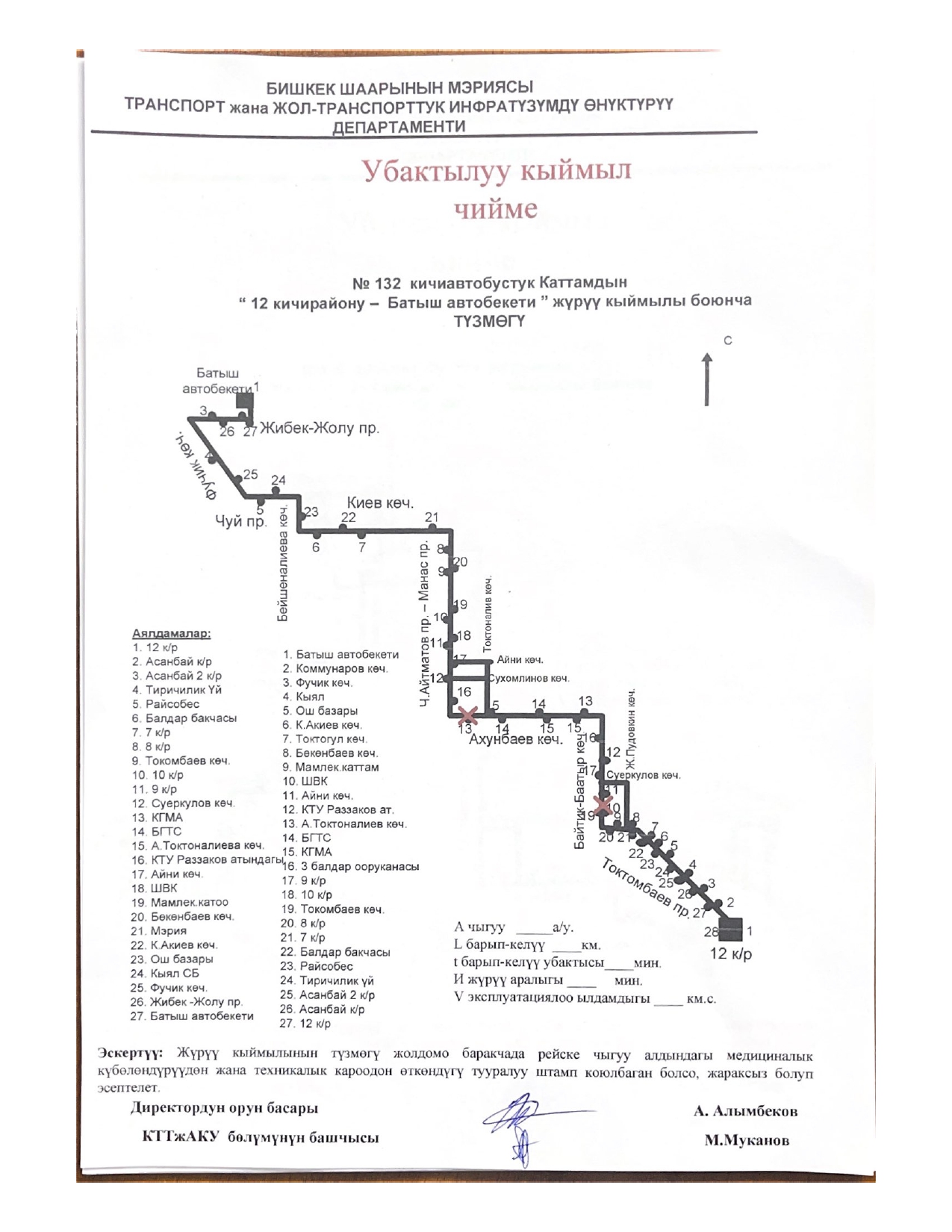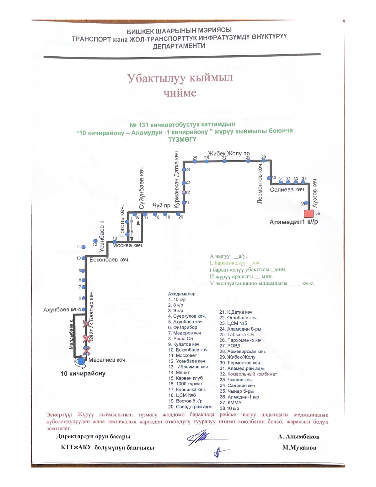 - № 131 — по улицам Ахунбаева, Малдыбаева до улицы Суеркулова и обратно;