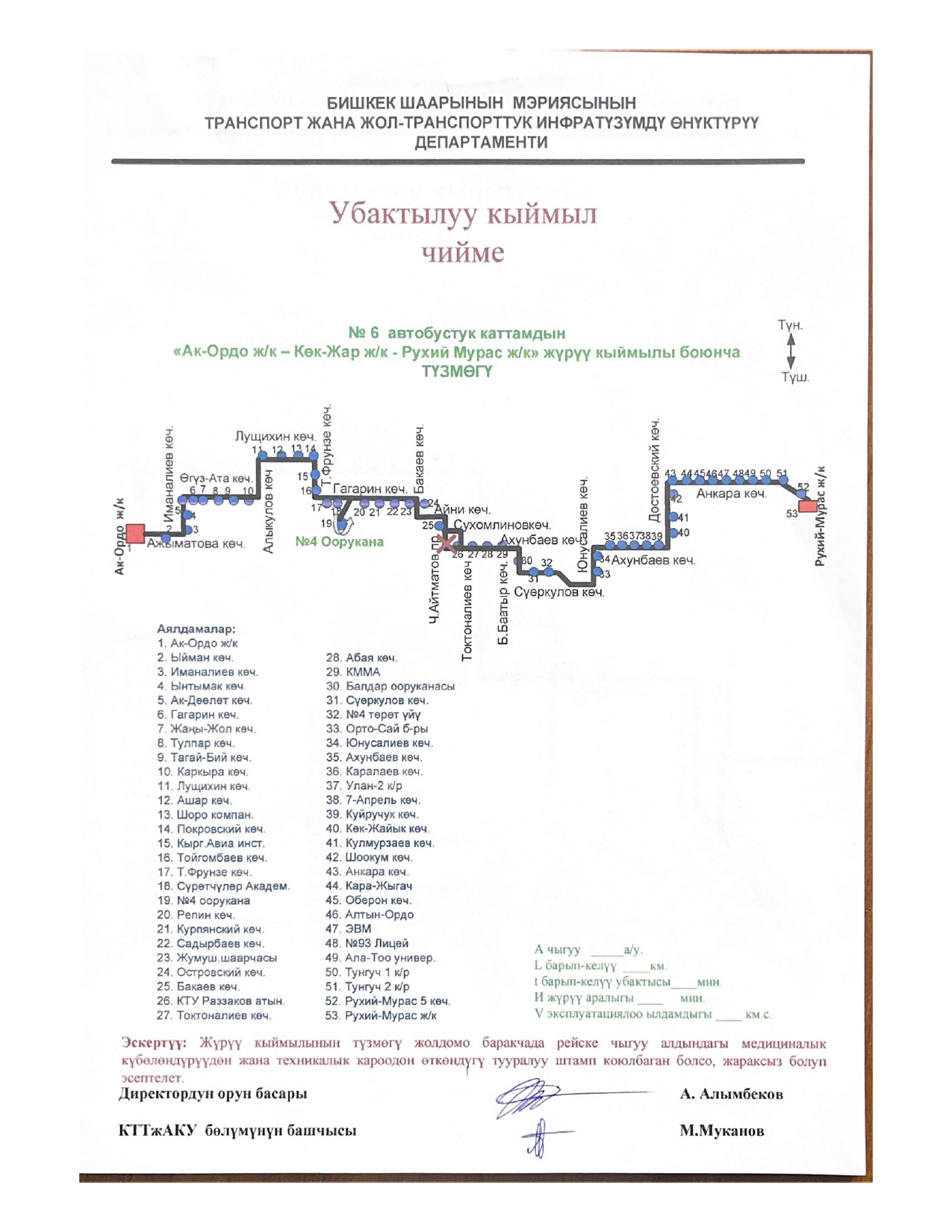 - № 6 — по улицам Токтоналиева и Сухомлинова;