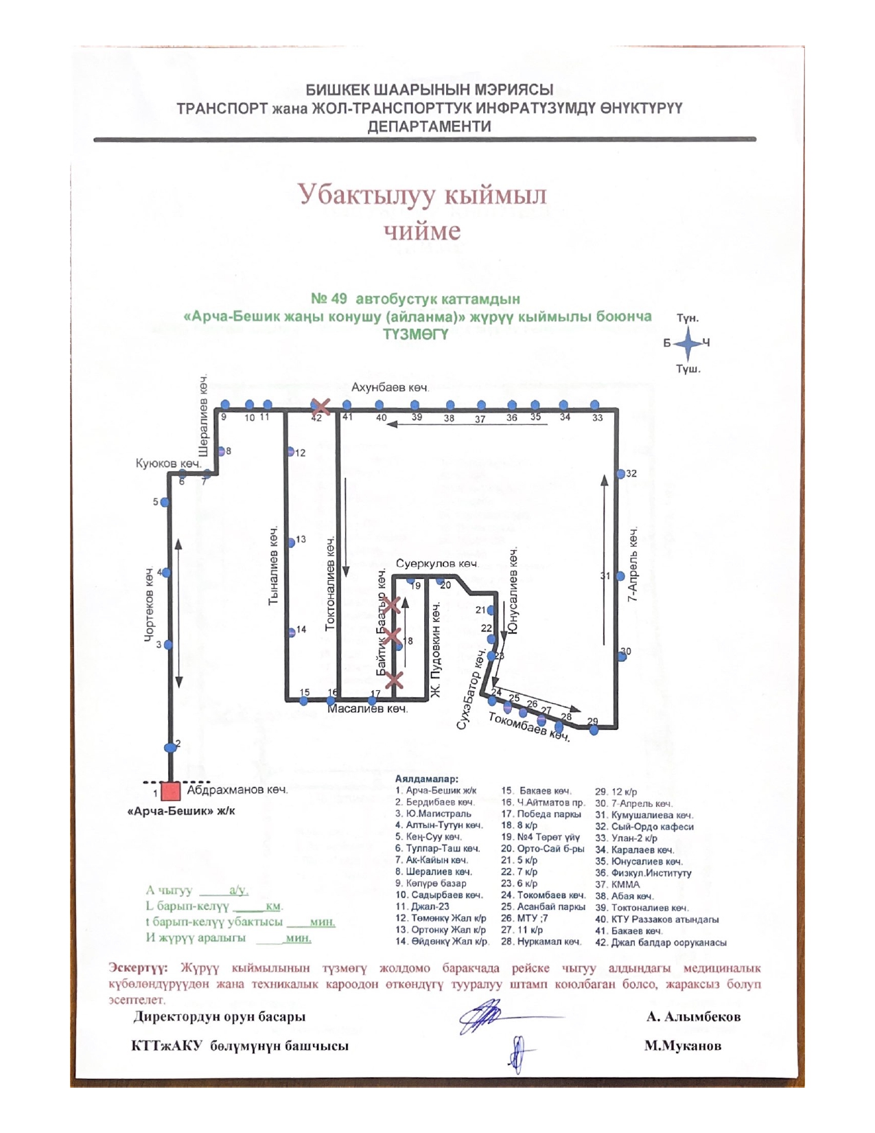 - № 49 — по улице Токтоналиева до улицы Масалиева, по улице Жукеева-Пудовкина на улицу Суеркулова;