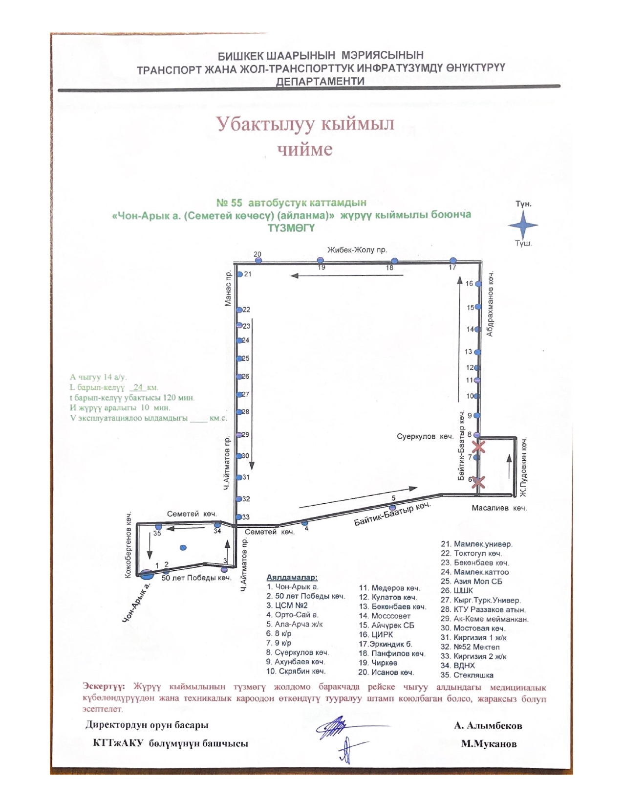 - № 55 — по улицам Масалиева, Жукеева-Пудовкина и Суеркулова;