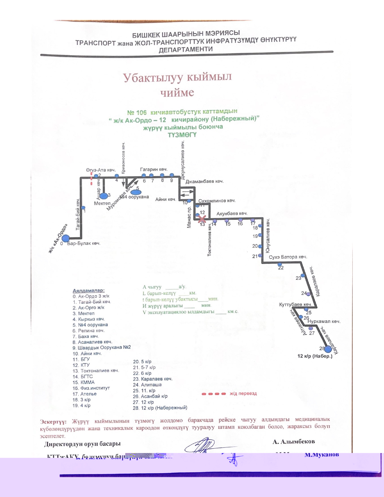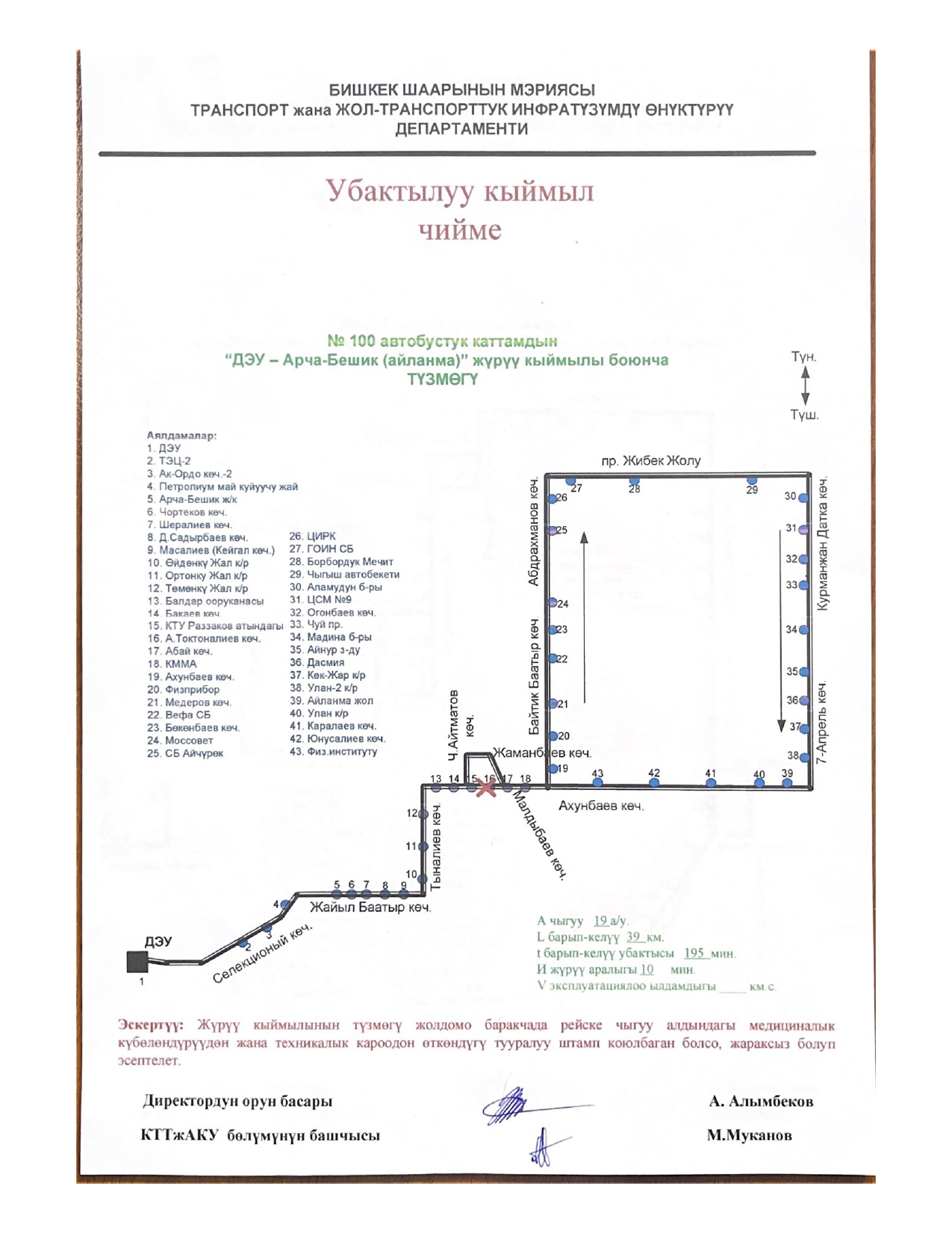 - № 100 — по проспекту Чингиза Айтматова, улицам Жаманбаева и Малдыбаева;