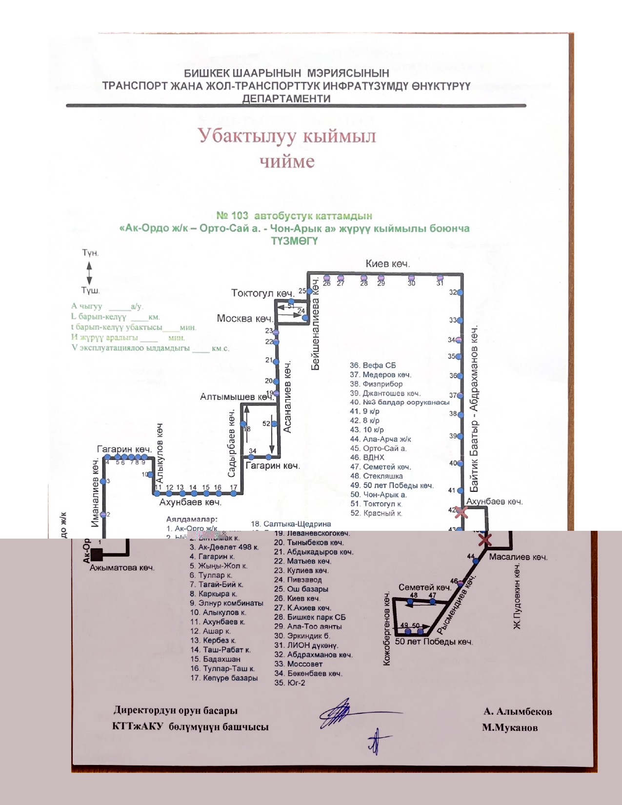 - № 103 — по улицам Ахунбаева, Жукеева-Пудовкина и Масалиева;