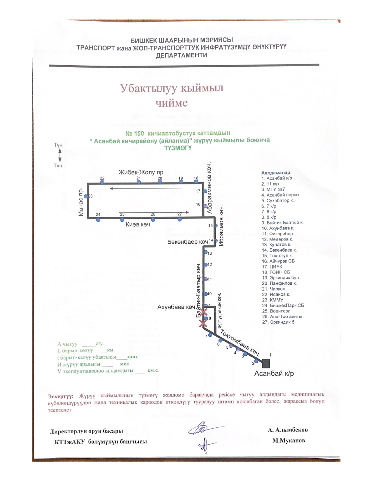 - № 150 — по улицам Жукеева-Пудовкина и Ахунбаева;