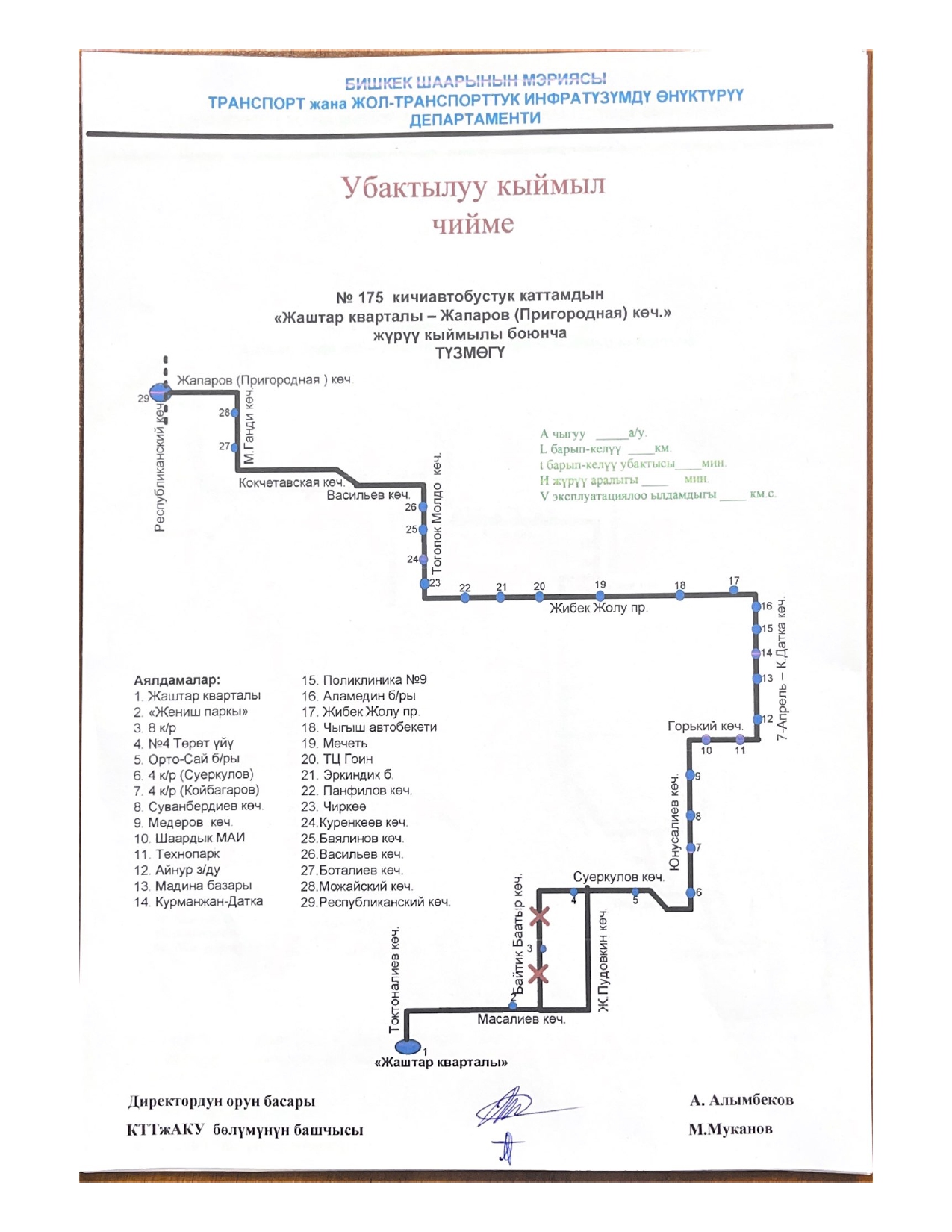 - № 175 — по улицам Масалиева и Жукеева-Пудовкина;