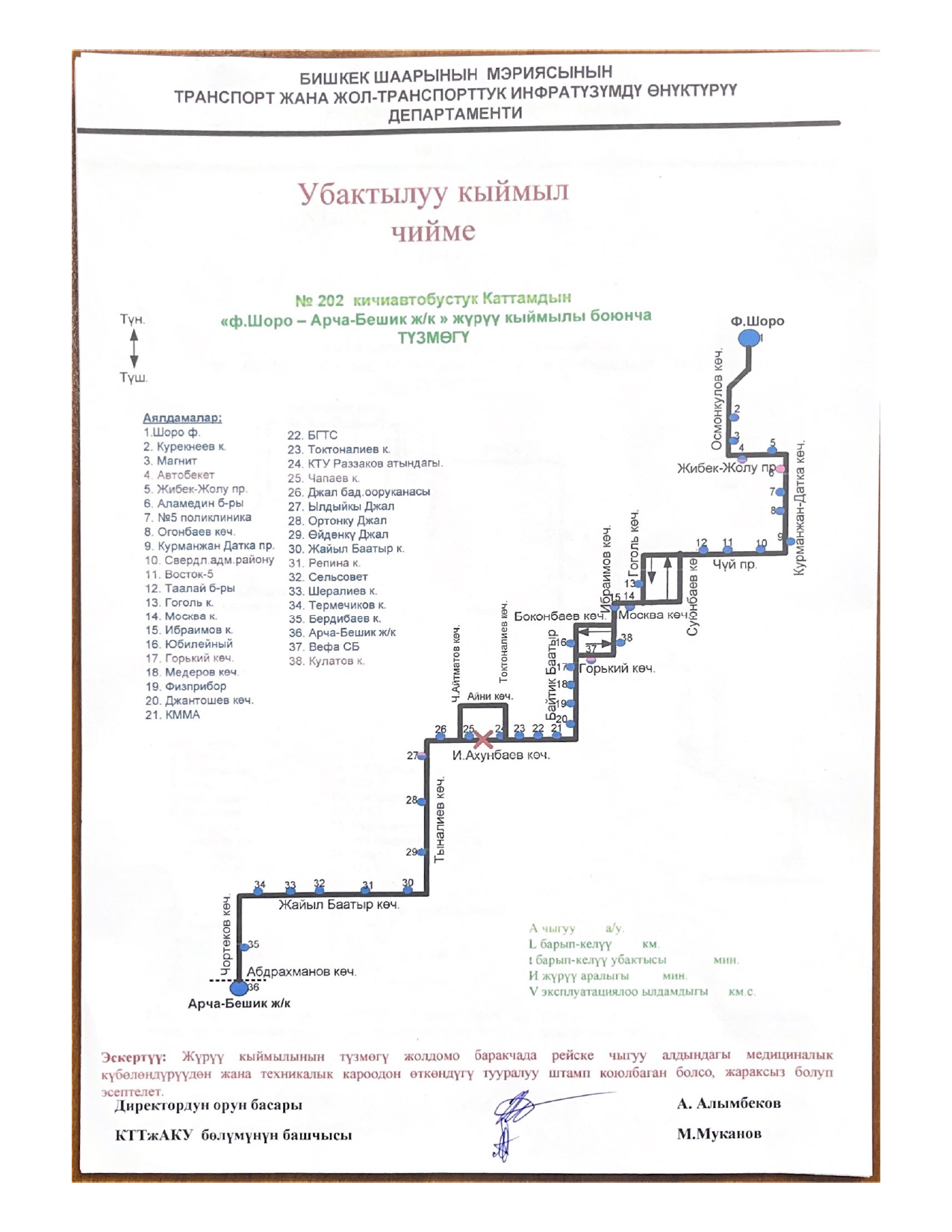 - № 202 — по проспекту Айтматова, улицам Айни и Токомбаева;