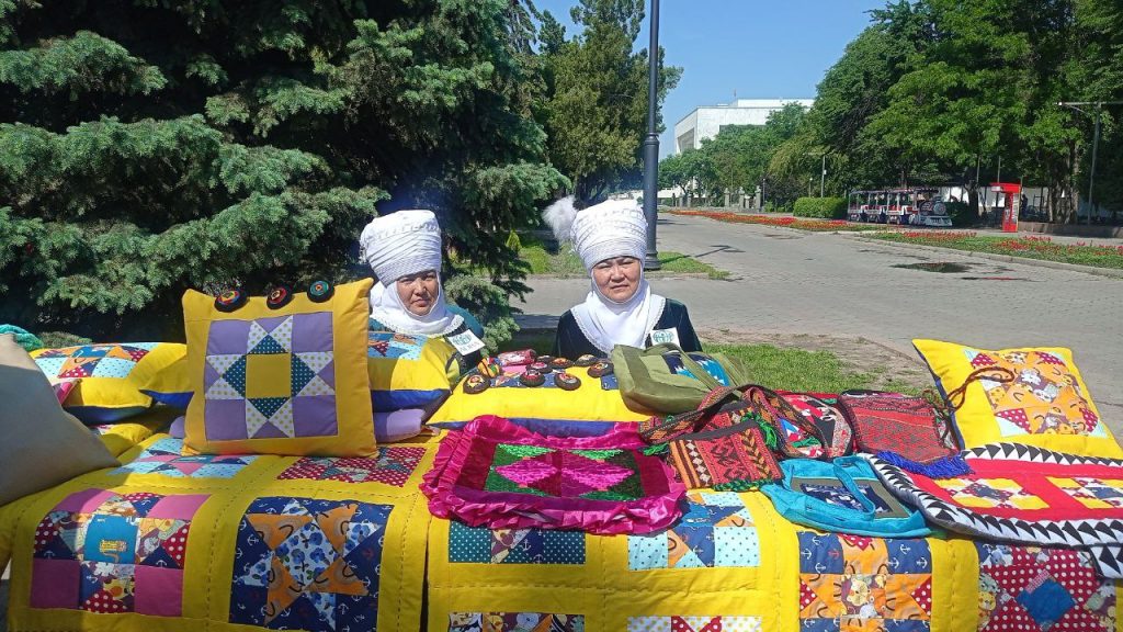 В ярмарке участвовали около 50 групп самопомощи пожилых людей из Иссык-Кульской, Чуйской областей и Бишкека. Они представили изделия из войлока, шерсти, сувенирную национальную продукцию и многое другое.