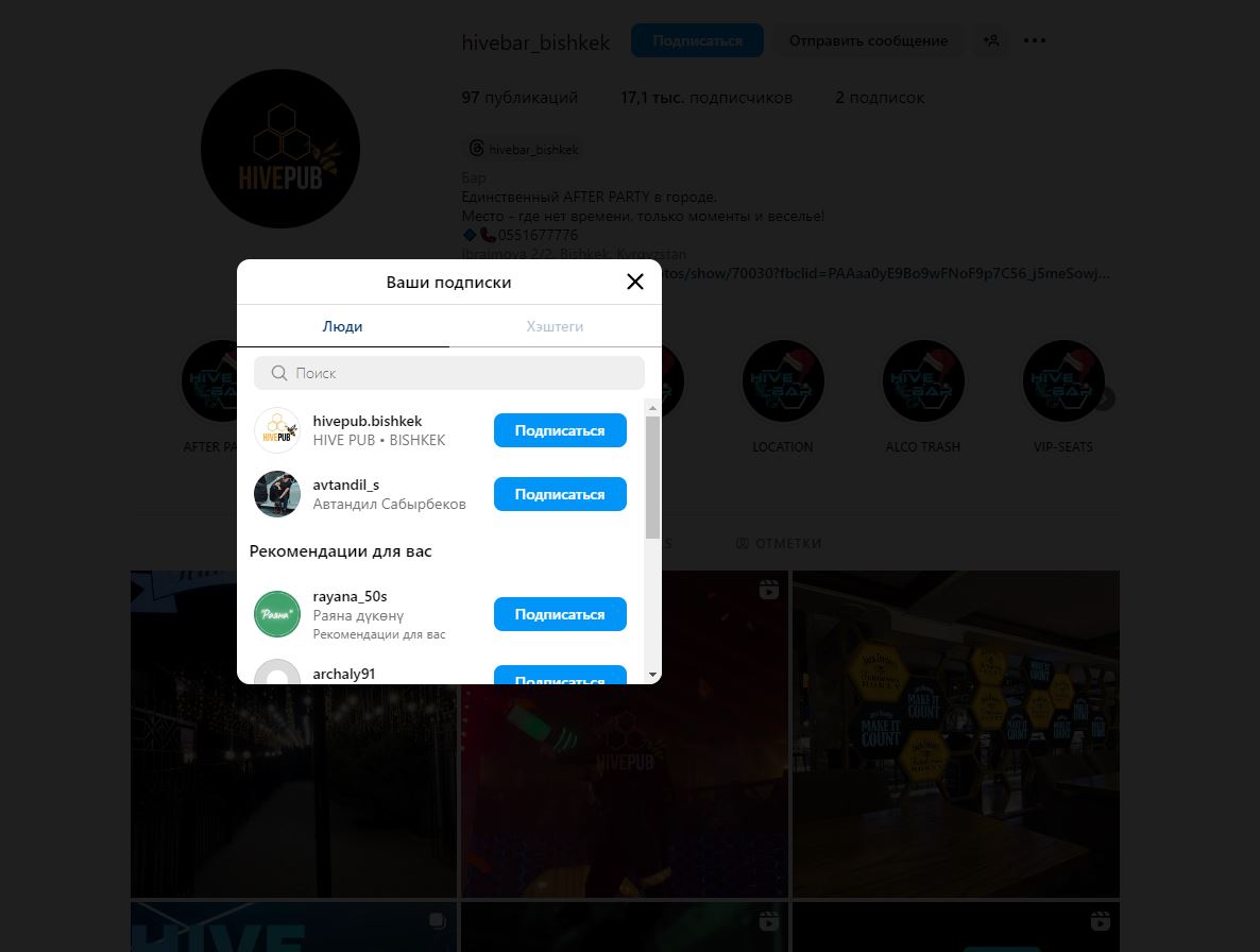 Автандилу Сабырбекову 30 лет. Многим он известен как владелец ночного клуба Hivebar. В Instagram страница заведения подписана только на его аккаунт. При этом каких-либо компаний, зарегистрированных на имя Автандила Сабырбекова, в Министерстве юстиции нет.