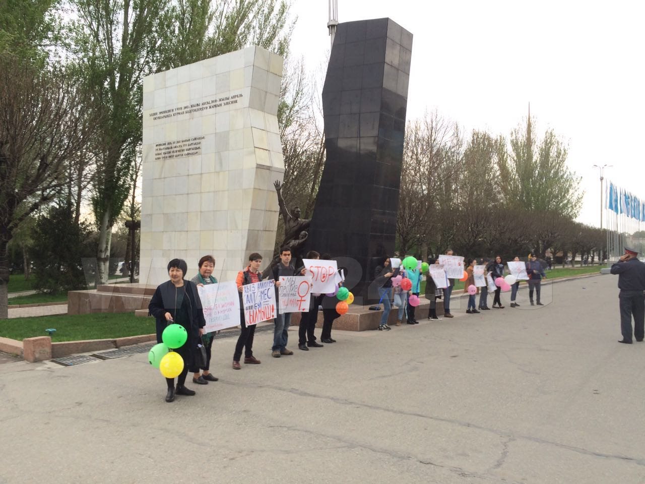 Правозащитники и активисты организовали мирный митинг возле памятника героям апрельской революции в центре Бишкека. Об этом ИА «24.kg» сообщила руководитель правозащитной организации «Бир Дуйно — Кыргызстан» Толекан Исмаилова.