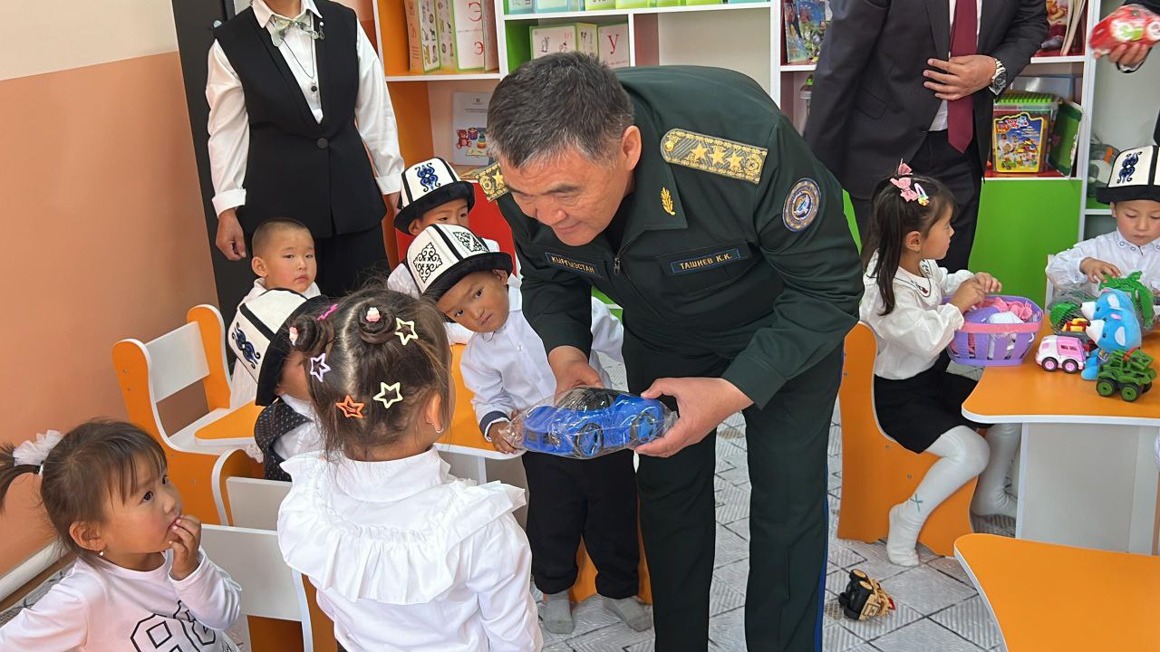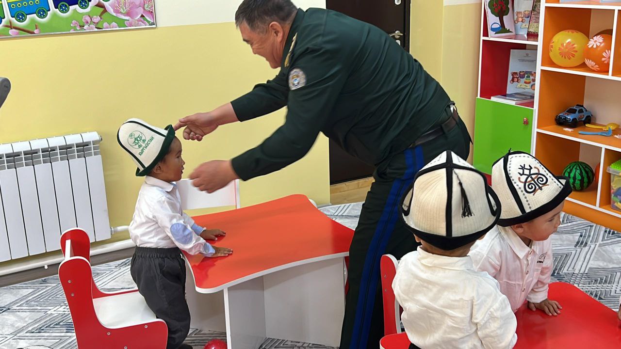 На территории пограничной заставы «Кара-Мык» в Чон-Алайском районе Ошской области открыли новый детский сад «Байчечекей», рассчитанный на 50 мест. Об этом сообщает Погранслужба ГКНБ.