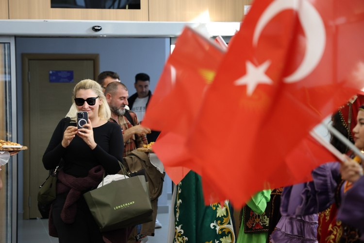 Сегодня, 24 сентября, в международном аэропорту «Манас» торжественно встретили известных турецких блогеров, которые прибыли для продвижения туристического потенциала Кыргызстана. В церемонии приняли участие председатель правления ОАО «Международный аэропорт «Манас» Манасбек Самидинов и торговый представитель Кыргызской Республики в Турции Чынгыз Токтобеков.