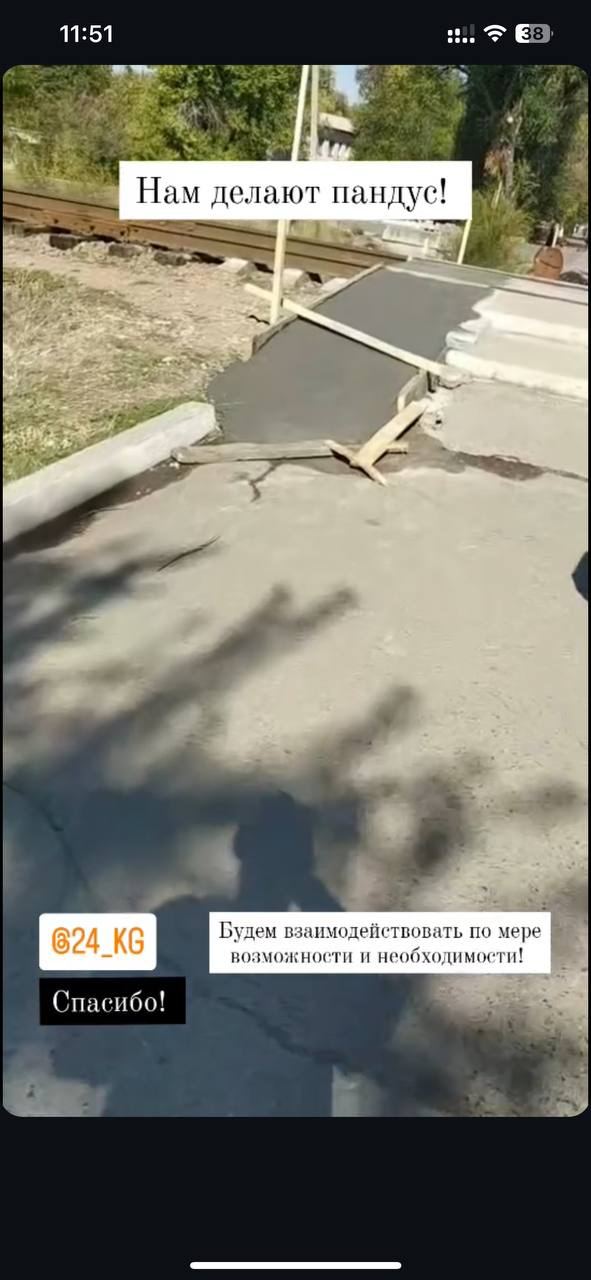 «Кроме того, пандус установлен на участке, упомянутом в обращении гражданки. Также хотим отметить, что устройства для людей с ОВЗ есть и на других станциях, таких как «Бишкек-1», «Бишкек-2», «Аламедин» и других», — сказали представители предприятия.
