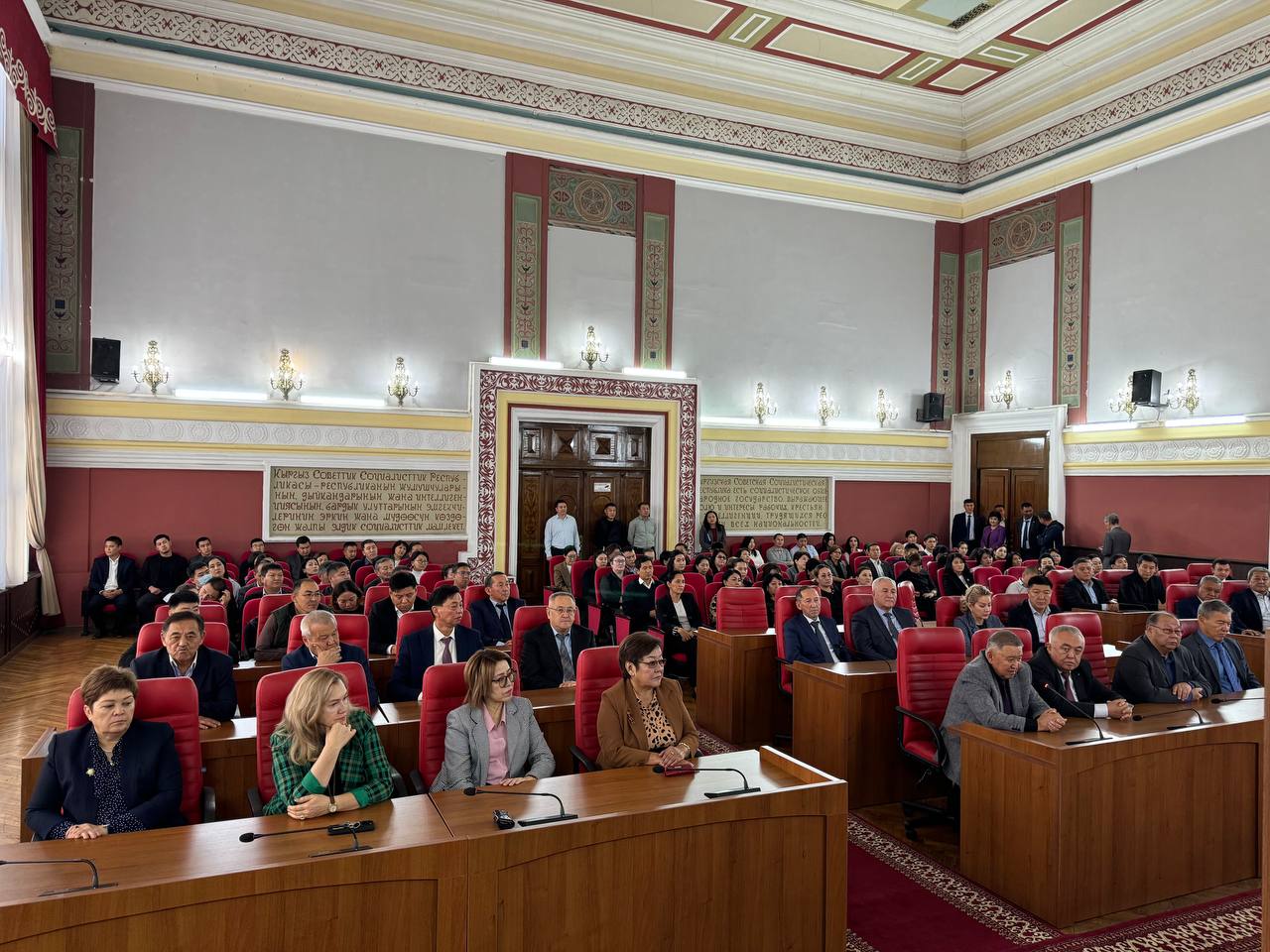 В пресс-службе отмечают, что в зале пленума ВС КР судьи и сотрудники аппарата высшего судебного органа выразили благодарность заслуженному юристу Замирбеку Базарбекову.