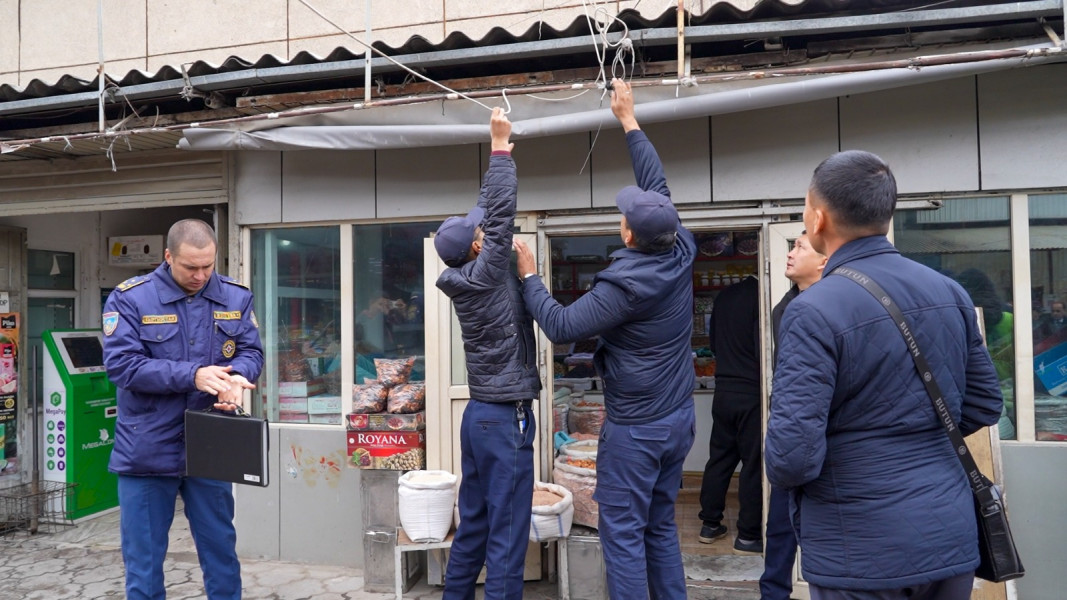 Сотрудники муниципальной инспекции сняли незаконные навесы, а торговцы получили штрафы за нарушение правил торговли. Составлено восемь протоколов в отношении физических лиц на общую сумму 24 тысячи сомов.