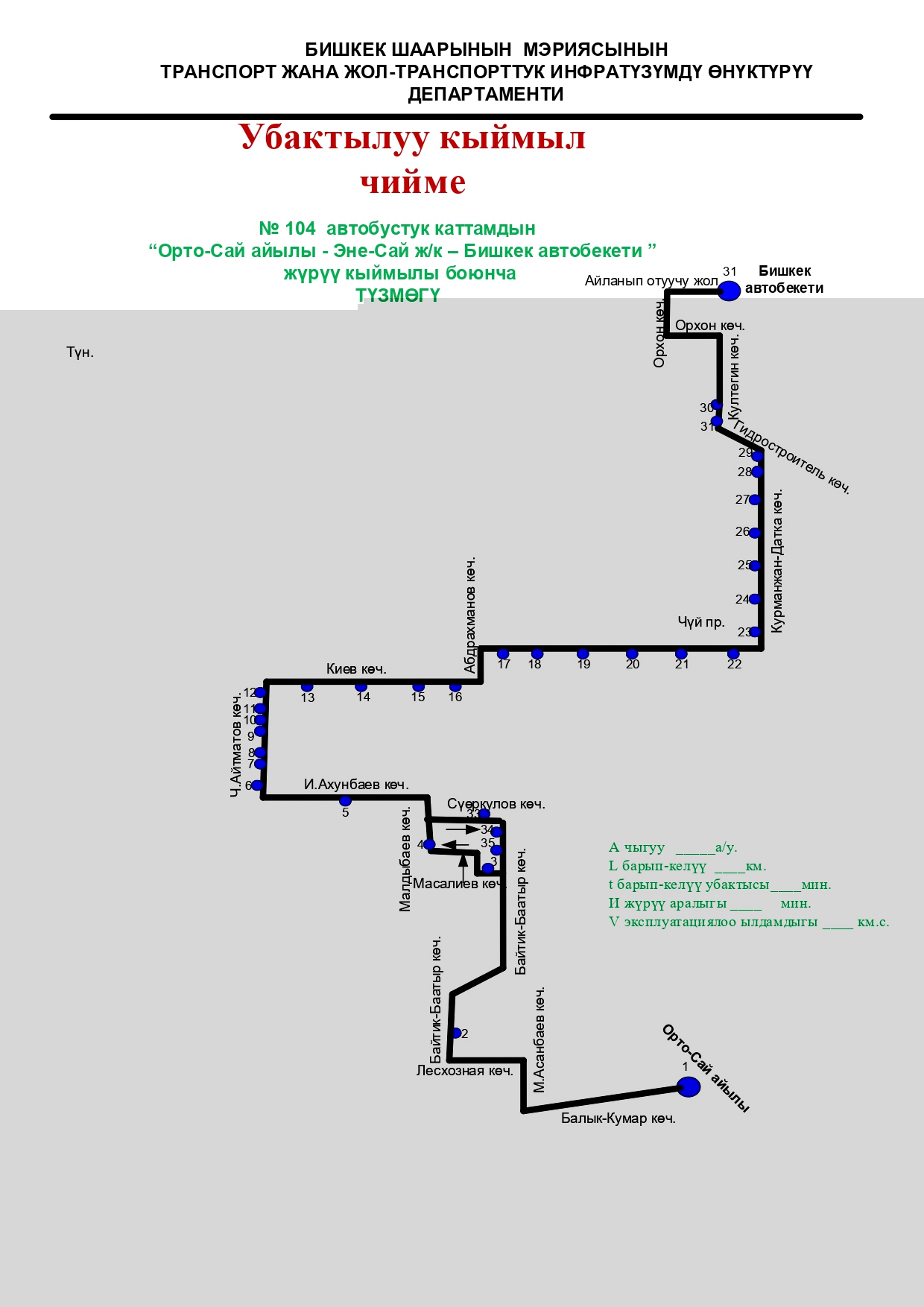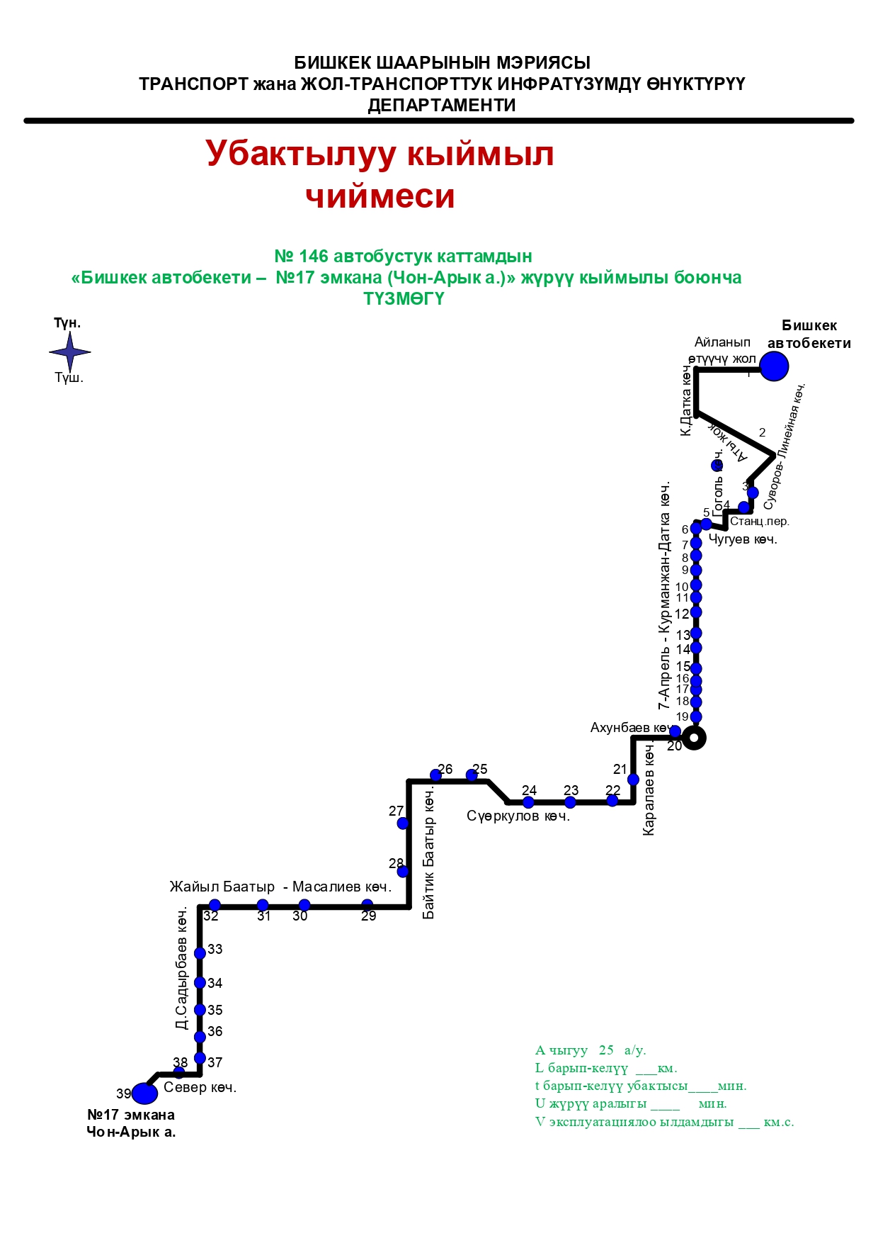 Так, конечные остановки муниципальных автобусных маршрутов № 146 и 104 продлены до муниципального предприятия «Бишкекский автовокзал» по адресу: улица Алма-Атинская, 1/1.