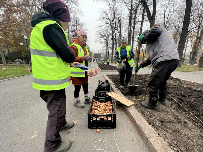 Отмечается, что на этот раз высажены различные виды тюльпанов, отобранные и привезенные из Голландии. Мастера-цветоводы МП «Бишкекзеленстрой» продумали элементы высадки, чтобы весной парки столицы были украшены дизайнерскими композициями.