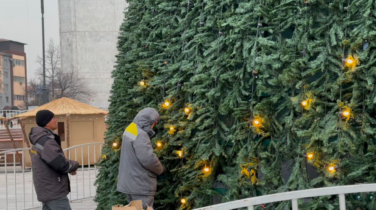 Ранее каркас елки установили сотрудники МП «Тазалык». Высота главного новогоднего дерева — 32 метра, диаметр — 13 метров.