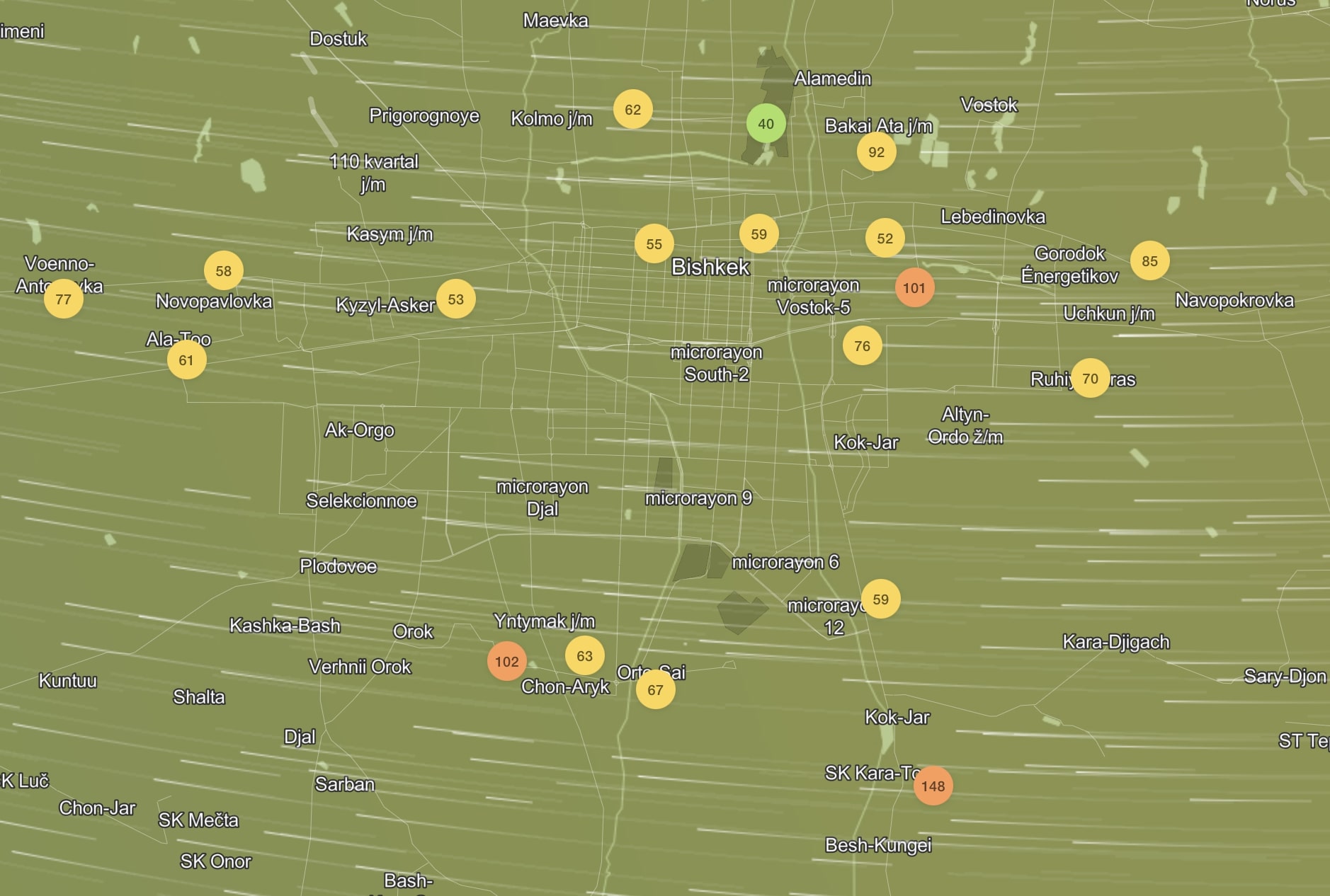 В рейтинге крупнейших городов мира по качеству воздуха World Air Quality на 18.00 Бишкек находится на 72-м месте.
