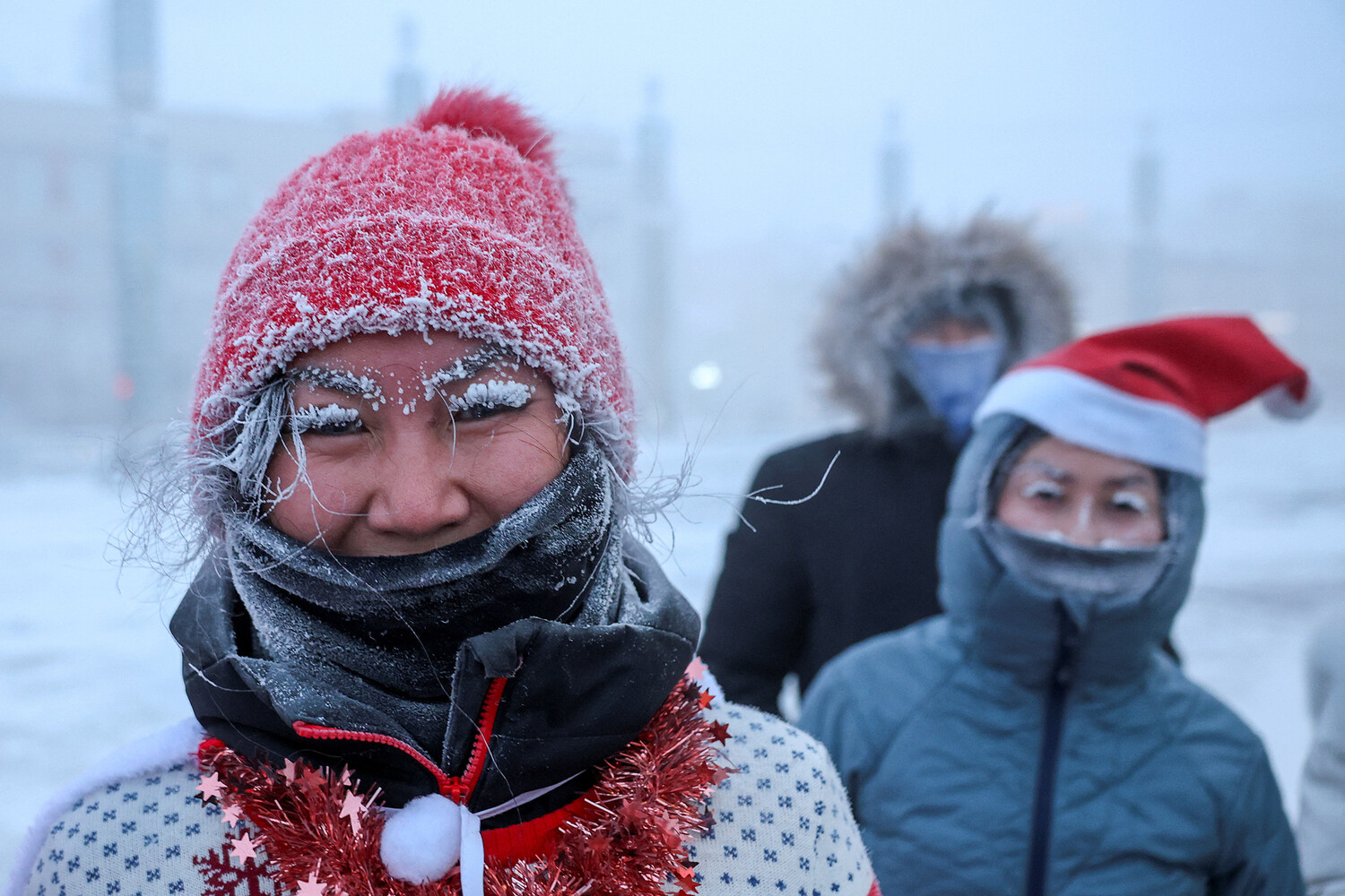 Люди собираются в Якутске (Республика Саха), несмотря на температуру ниже -47 градусов по Цельсию, 31 декабря 2024 года