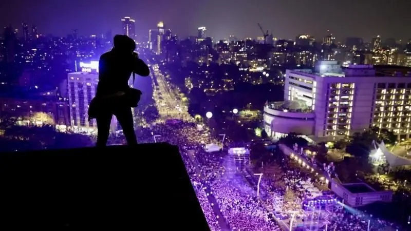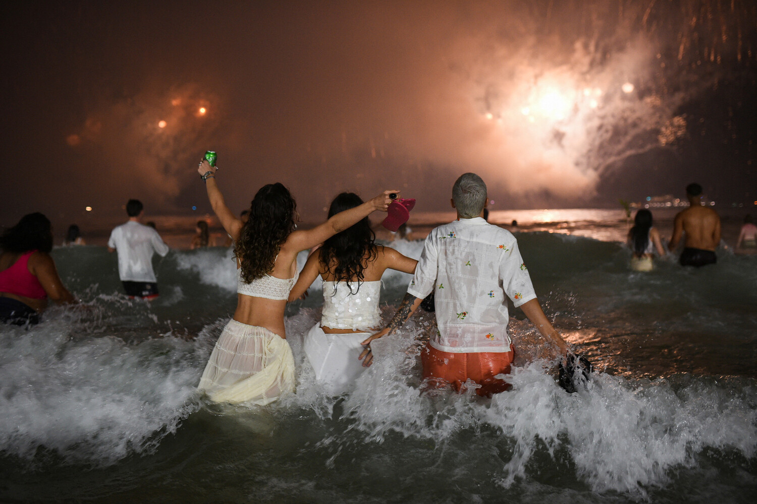 Люди на пляже Копакабана во время празднования Нового года в Рио-де-Жанейро (Бразилия)