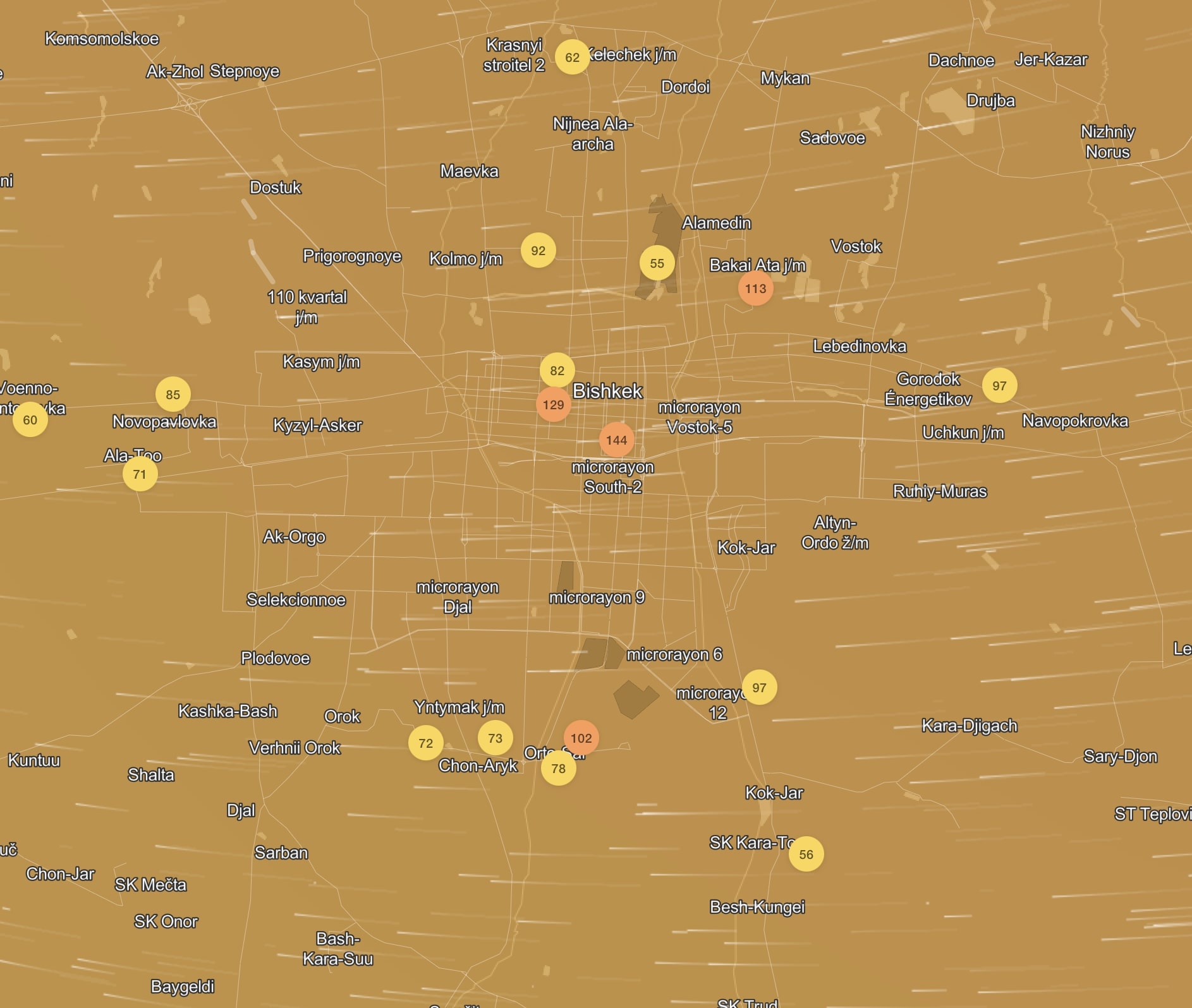 В рейтинге крупнейших городов мира по качеству воздуха World Air Quality на 18.00 Бишкек находится на 48-м месте.