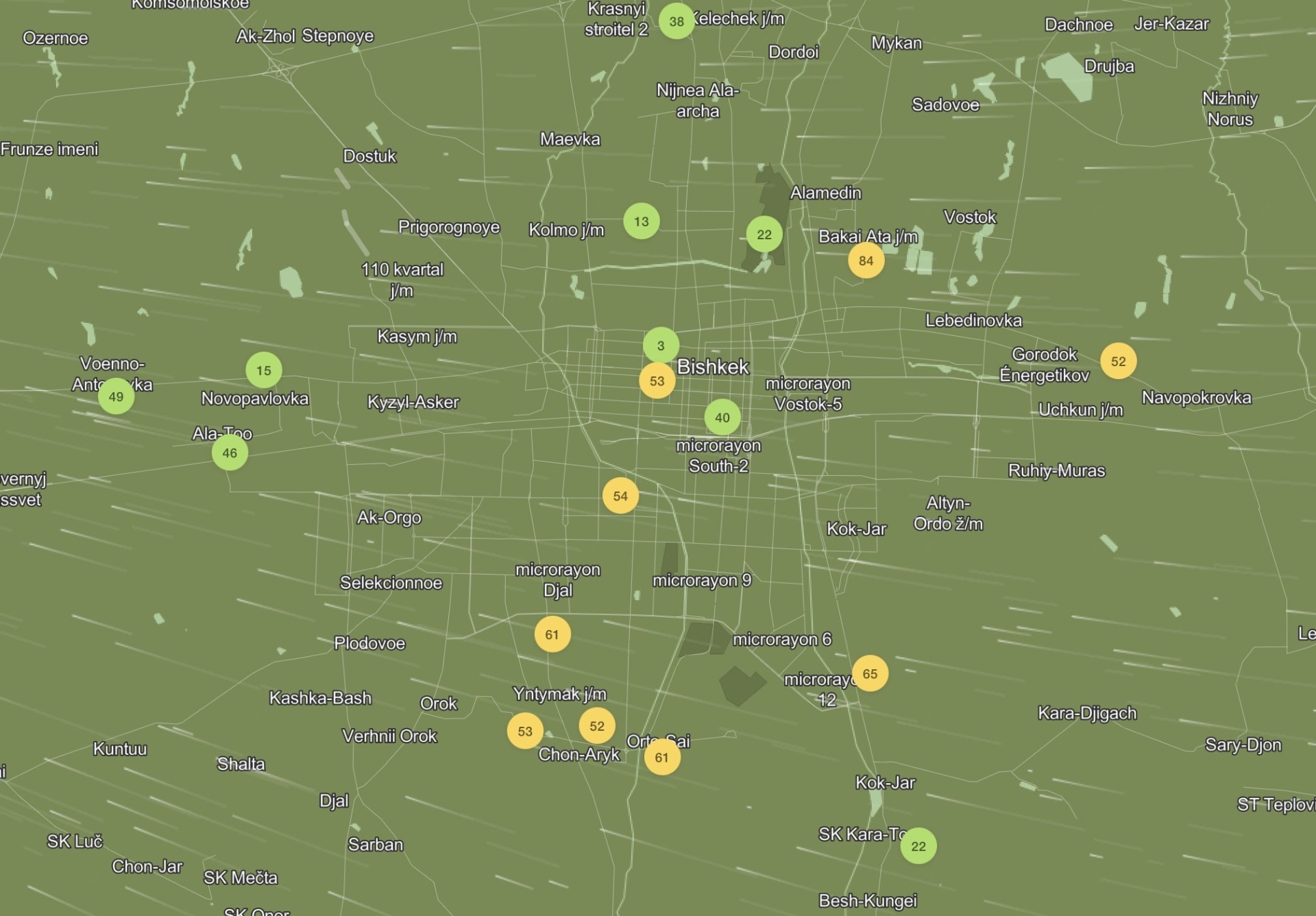 Добавим, министр природы Медер Машиев заявил, что в Бишкеке смога стало меньше. По его словам, основные причины смога — это отсутствие катализаторов у 85 процентов автомобилей в стране, увеличение количества жилмассивов вокруг столицы, хаотичное, неплановое строительство и вырубка деревьев.
