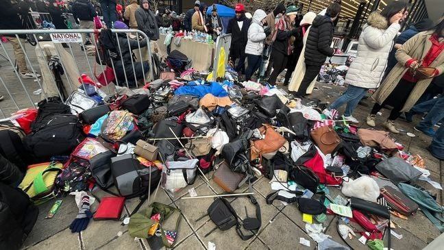 Тысячи сумок, рюкзаков и кошельков выброшены у входа в Capital One Arena в Вашингтоне в день инаугурации президента США Дональда Трампа, сообщает The New York Sun.