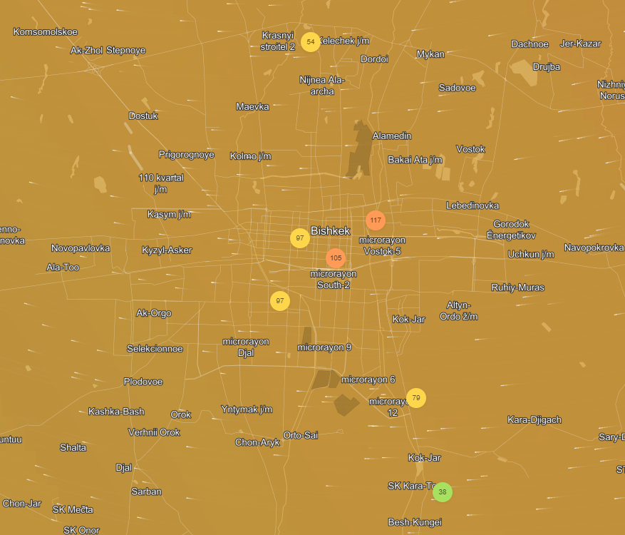 Добавим, что недавно Бишкек стал лидером по загрязнению воздуха в мире. Ранее министр природы Медер Машиев заявил, что в городе смога стало меньше. По его словам, основные причины смога — это отсутствие катализаторов у 85 процентов автомобилей в стране, увеличение количества жилмассивов вокруг столицы, хаотичное, неплановое строительство и вырубка деревьев.