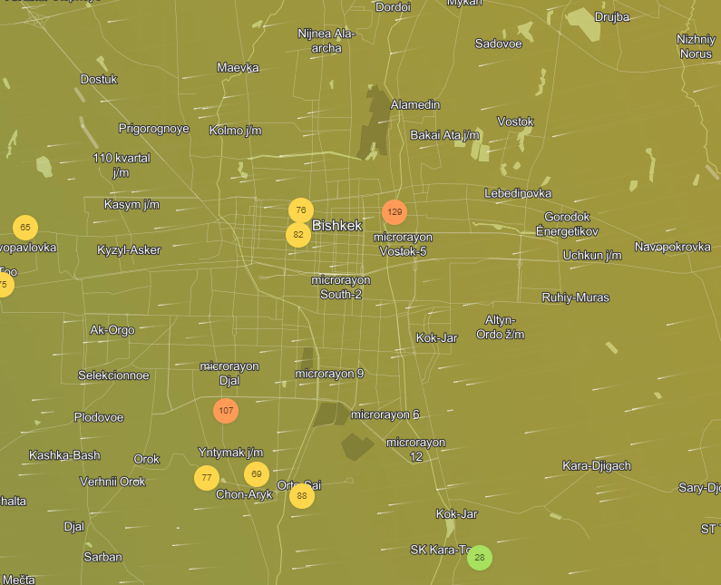 Добавим, что недавно Бишкек стал лидером по загрязнению воздуха в мире. Ранее министр природы Медер Машиев заявил, что в городе смога стало меньше. По его словам, основные причины смога — это отсутствие катализаторов у 85 процентов автомобилей в стране, увеличение количества жилмассивов вокруг столицы, хаотичное, неплановое строительство и вырубка деревьев.