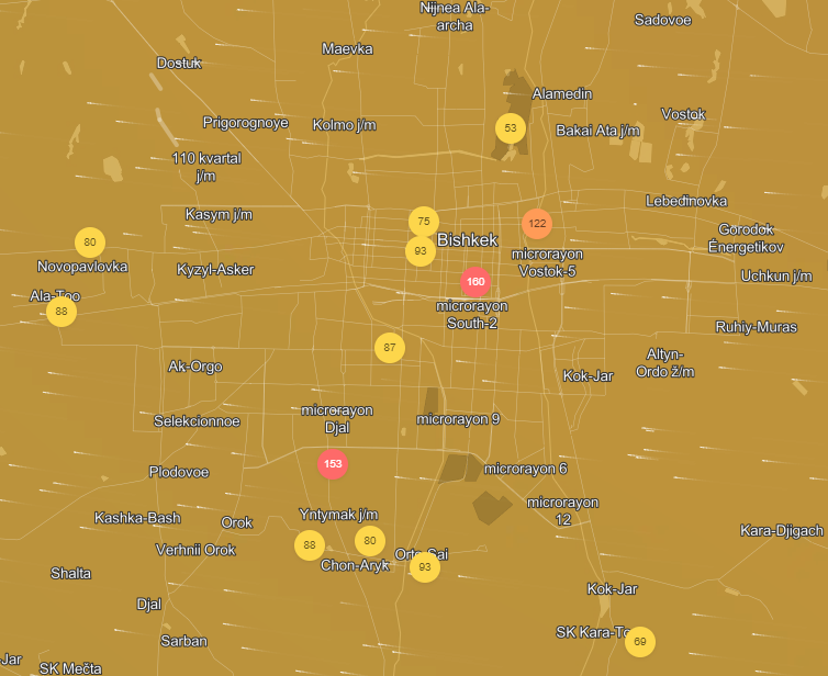 Добавим, что недавно Бишкек стал лидером по загрязнению воздуха в мире. Ранее министр природы Медер Машиев заявил, что в городе смога стало меньше. По его словам, основные причины смога — это отсутствие катализаторов у 85 процентов автомобилей в стране, увеличение количества жилмассивов вокруг столицы, хаотичное, неплановое строительство и вырубка деревьев.