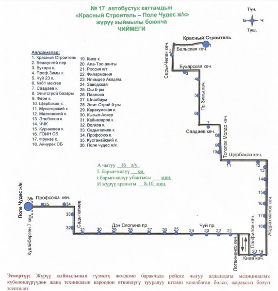 Автобус № 17, ранее курсировавший по маршруту жилмассив «Алтын-Казык» — жилмассив «Поле Чудес», изменяет конечную остановку: вместо жилмассива «Алтын-Казык» теперь будет следовать до жилмассива «Красный строитель».