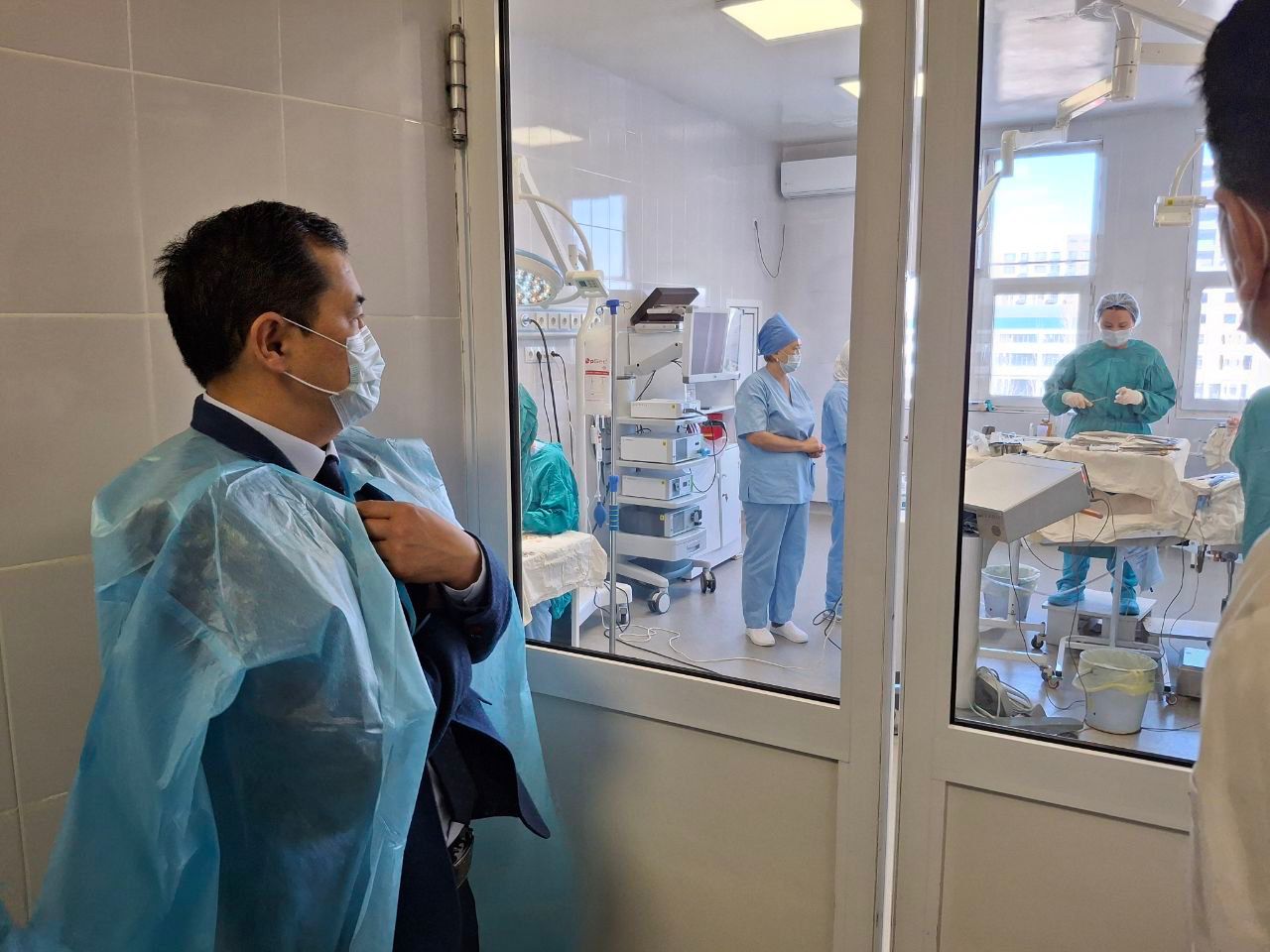 Министр здравоохранения Эркин Чечейбаев посетил Национальный центр охраны материнства и детства (НЦОМиД), где ознакомился с условиями проведения операций по трансплантации органов.