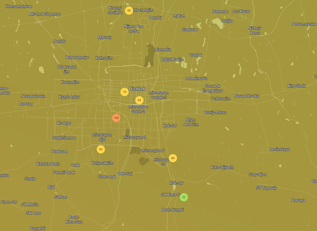Добавим, что недавно Бишкек стал лидером по загрязнению воздуха в мире. Ранее министр природы Медер Машиев заявил, что в городе смога стало меньше. По его словам, основные причины смога — это отсутствие катализаторов у 85 процентов автомобилей в стране, увеличение количества жилмассивов вокруг столицы, хаотичное, неплановое строительство и вырубка деревьев.