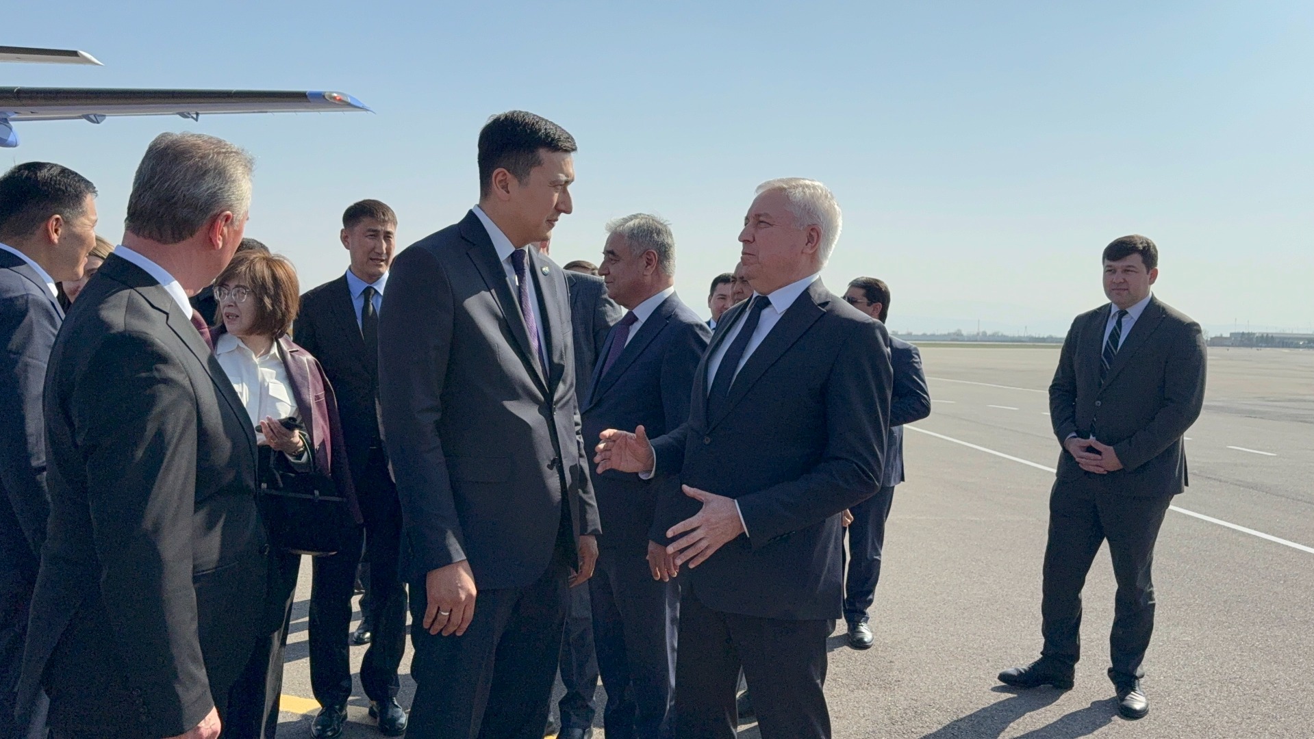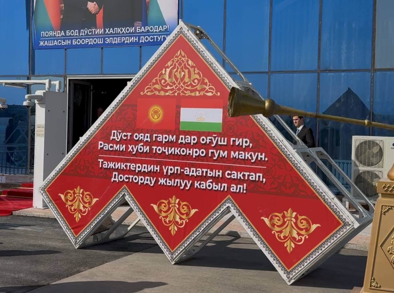Кыргызскую делегацию встретили водяной аркой, игрой на музыкальных инструментах и угощениями. У входа в аэропорт были установлены большая фотография президентов Садыра Жапарова и Эмомали Рахмона и стенд на кыргызском и таджикском языках с надписью «Тажиктердин урп-адатын сактап, досторду жылуу каьыл ал!» («Принимай друзей тепло, сохраняя традиции таджикского народа!»)