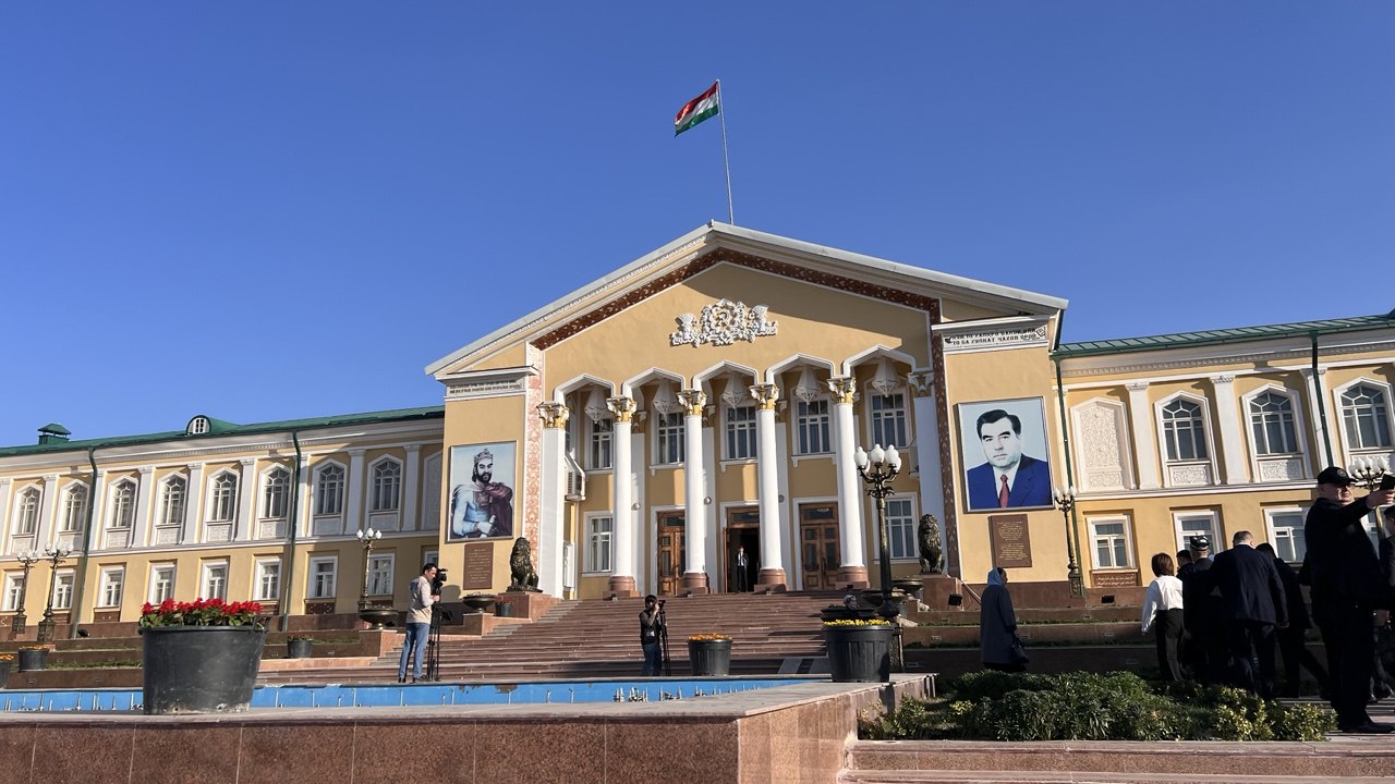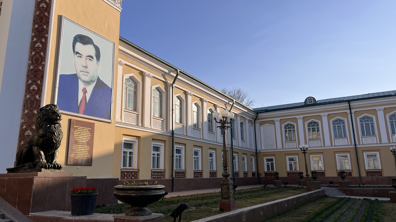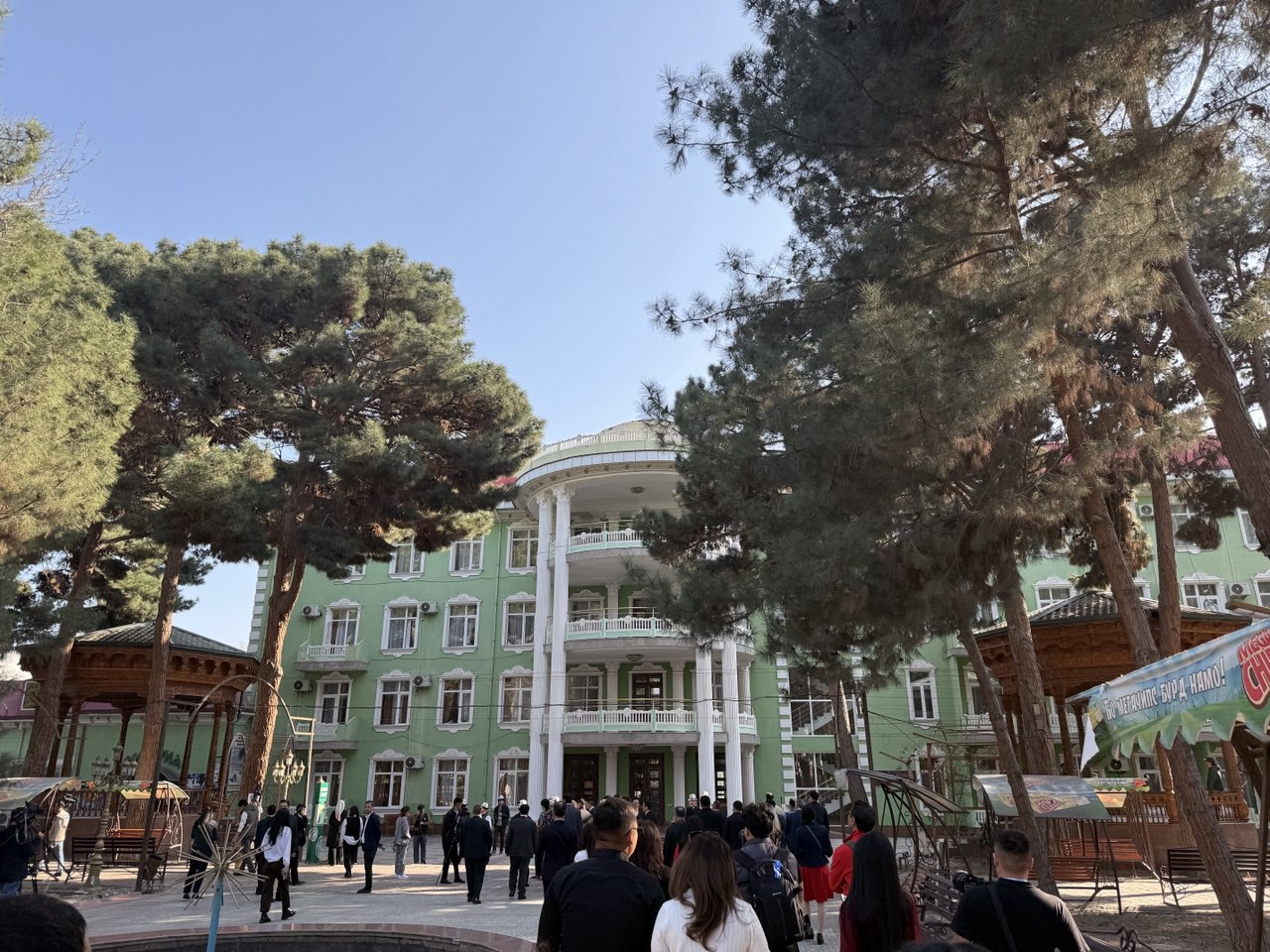 Первым местом, которое показали гостям из Кыргызстана, было Таджикское море на территории санатория «Бахористон». Его официальное название — Кайраккумское водохранилище, но из-за схожести с настоящим морем местное население дало ему второе имя. Водоем находится на севере республики, в Согдийской области, и является частью водной системы реки Сырдарьи. По словам гида Хафиза, санаторий «Бахористон» является одним из популярных туристических мест в Таджикистане.Дворец культуры «Арбоб»