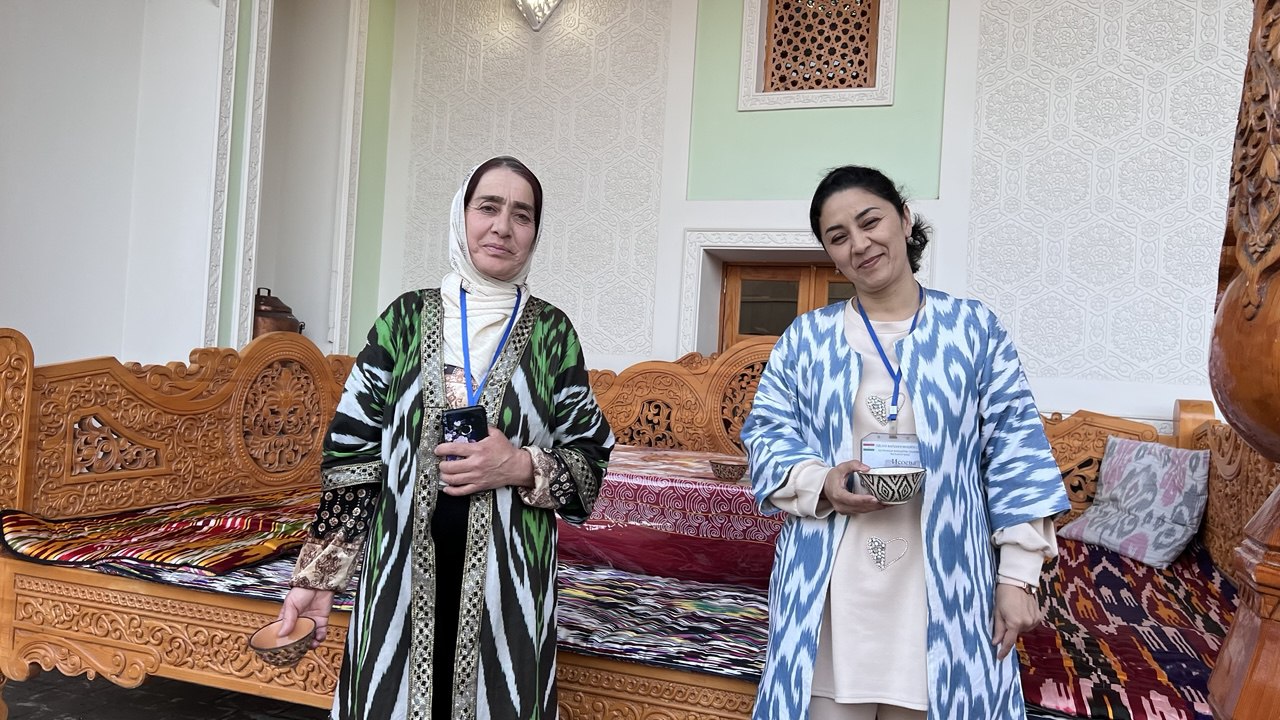 Последней достопримечательностью, которую показали гостям, стала Худжандская крепость. Основанная в XVI веке, она выполняла роль щита от внешних угроз. За 2 тысячи 500 лет крепость много раз реконструировали, и сейчас от когда-то огромного сооружения сохранились только фрагменты. Почти шесть лет ушло на очередную реконструкцию.На территории также воссоздали восемь домов худжандской махалли (квартала), включая смоделированные дома купца, ковровщика, ткача, художника, чайхану и баню. Примечательно, что в каждом доме работают настоящие мастера по ковру, ткани и росписи на мраморе. Нори, одна из мастериц по ковроткачеству, поделилась, что занимается этим ремеслом с 4-го класса и в месяц создает два-три ковра.
