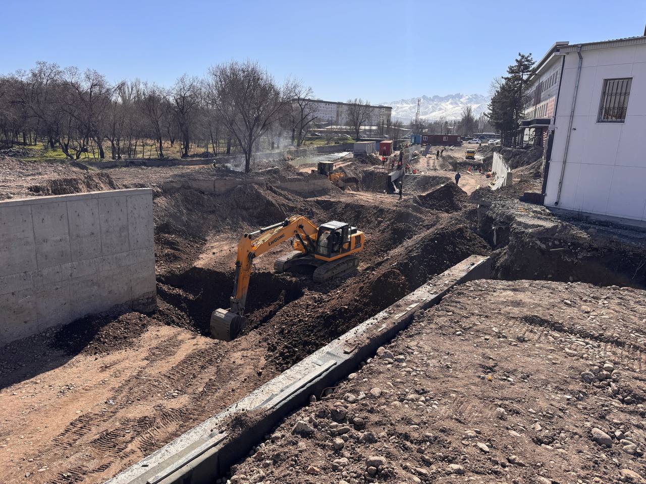 В Бишкеке строят новую дорогу с путепроводом под железной дорогой, расположенную вдоль реки Ала-Арча.