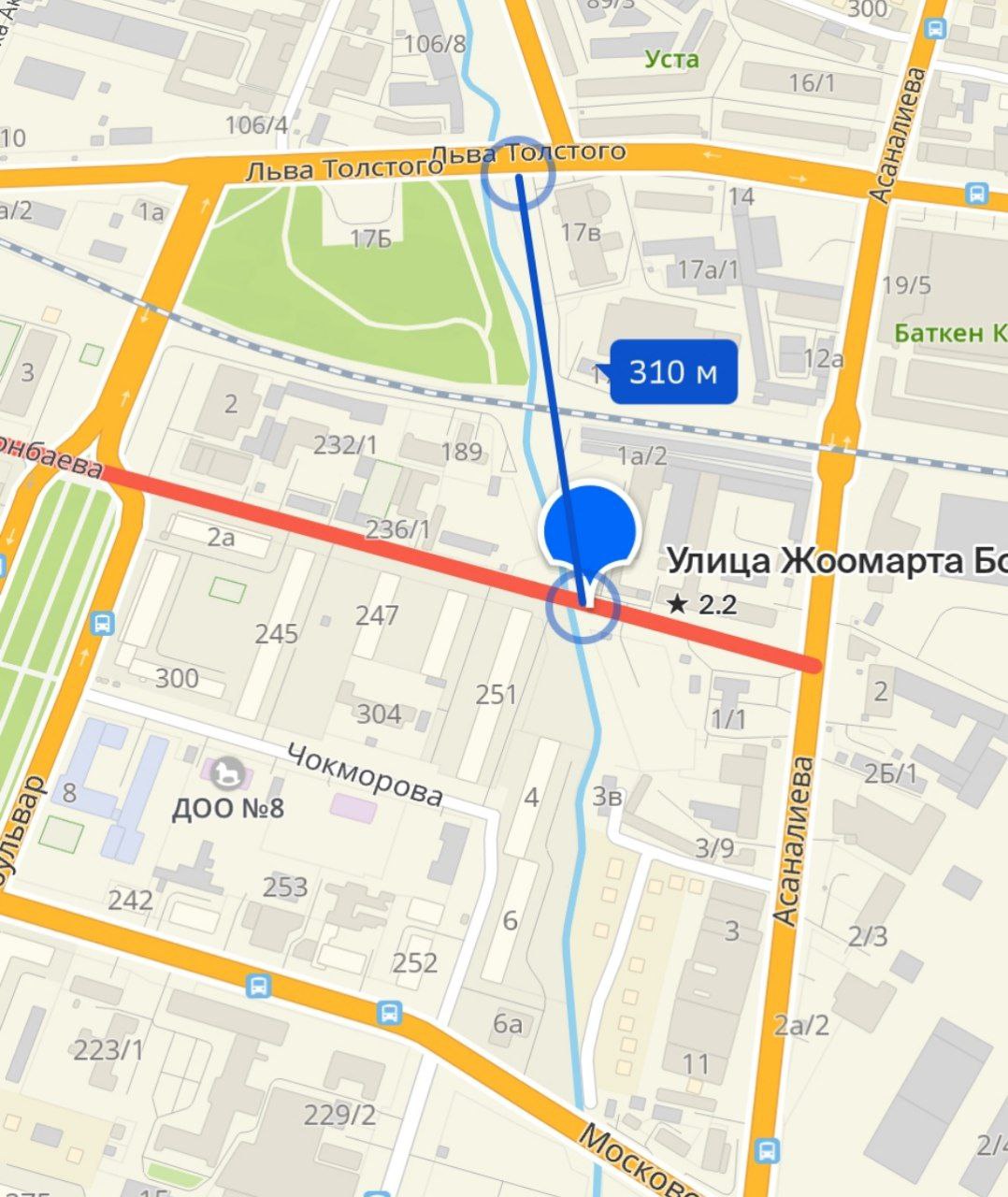Общая протяженность отрезка примерно 300 метров. После завершения строительства новый участок Бакаева от Льва Толстого до Боконбаева с путепроводом позволит разгрузить Молодую гвардию и Асаналиева, где обычно сильные заторы.