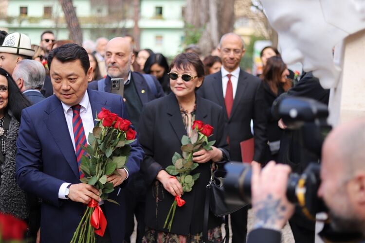 На церемонии открытия памятника Чингизу Айтматову в римском парке «Вилла Грациоли» присутствовали представители мэрии Рима, Министерства культуры Италии, послы и общественные деятели, интеллигенция. Однако для меня особенно трогательным было видеть наших соотечественников, проживающих в Италии. Они пришли с цветами, воспоминаниями, благодарностью. Кто-то тихо повторял строки из «Буранного полустанка», кто-то вспоминал, как в детстве зачитывался «Материнским полем». В их глазах были те самые тепло и гордость, что объединяет людей, даже если они далеко от родины.