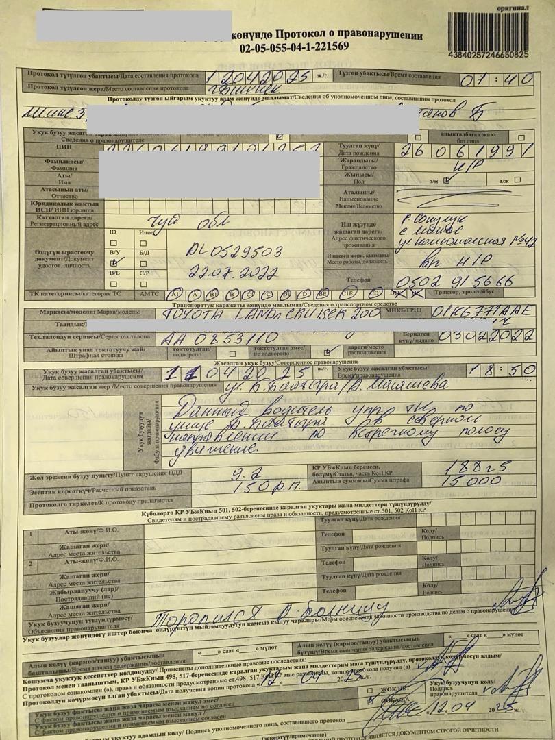 «По данному факту сотрудники Патрульной службы милиции Бишкека оперативно установили указанный автомобиль, выписали штраф в размере 15 тысяч сомов и провели разъяснительную работу с водителем», – говорится в сообщении.