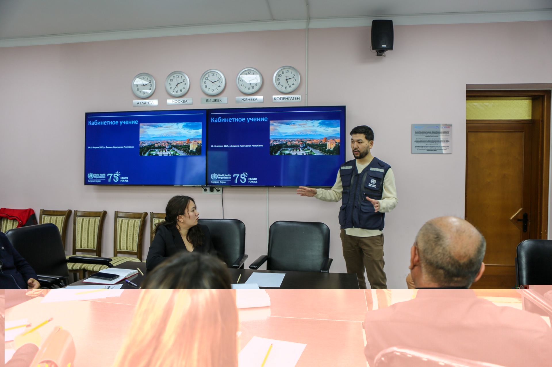 В Бишкеке провели учения в формате настольного моделирования, организованные страновым офисом ВОЗ в КР совместно с Европейским региональным бюро ВОЗ. Сценарий учений посвятили чрезвычайной ситуации — селю и одновременной вспышке зоонозного заболевания.