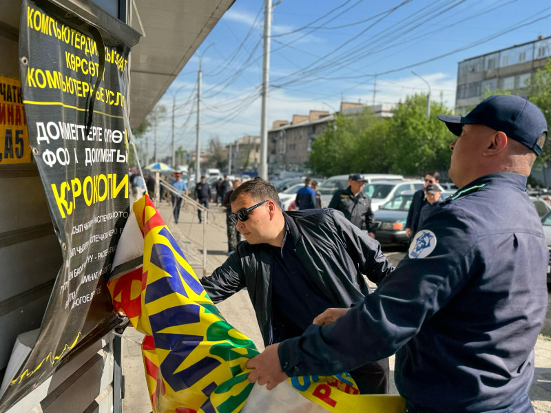 В ходе проверок по улице Бейшеналиевой от улицы Рыскулова до улицы Московской сотрудники очистили стихийные точки от предметов, сопутствующих торговле. На месте составлены гарантийные письма и выписаны протоколы.