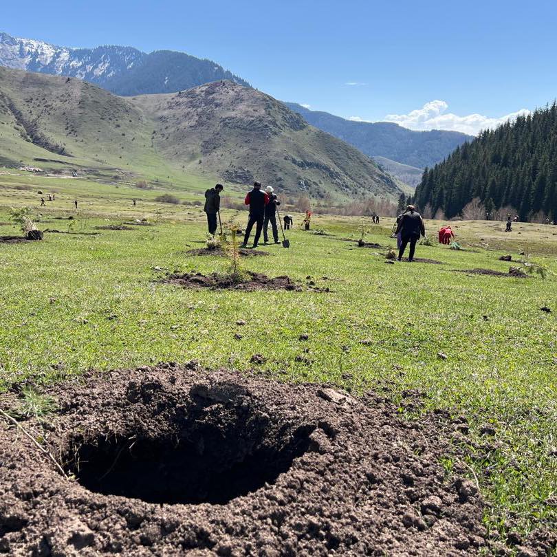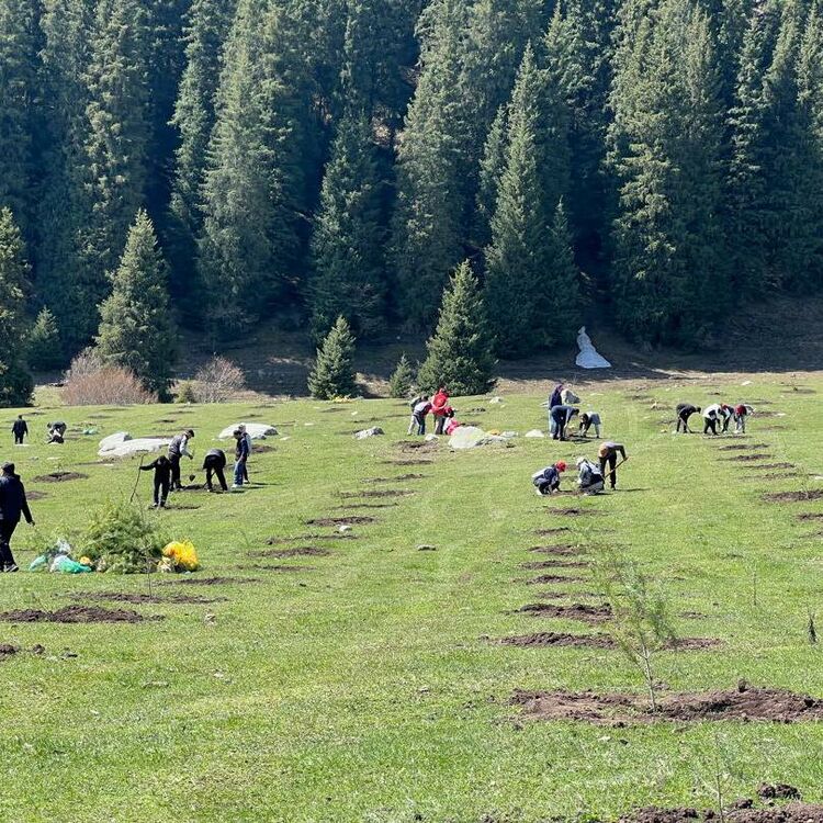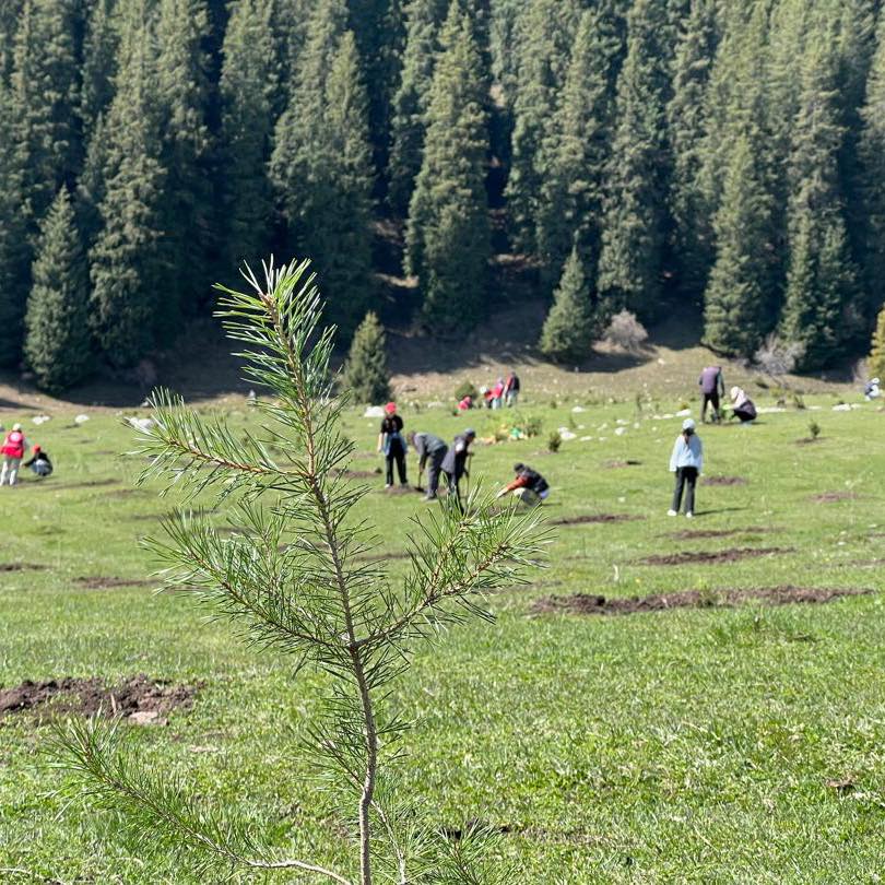 Были высажены 2 тысячи 100 саженцев тянь-шаньской ели, 4 тысячи саженцев обычной красной ели, 1 тысяча 400 саженцев березы и 600 саженцев абрикоса.