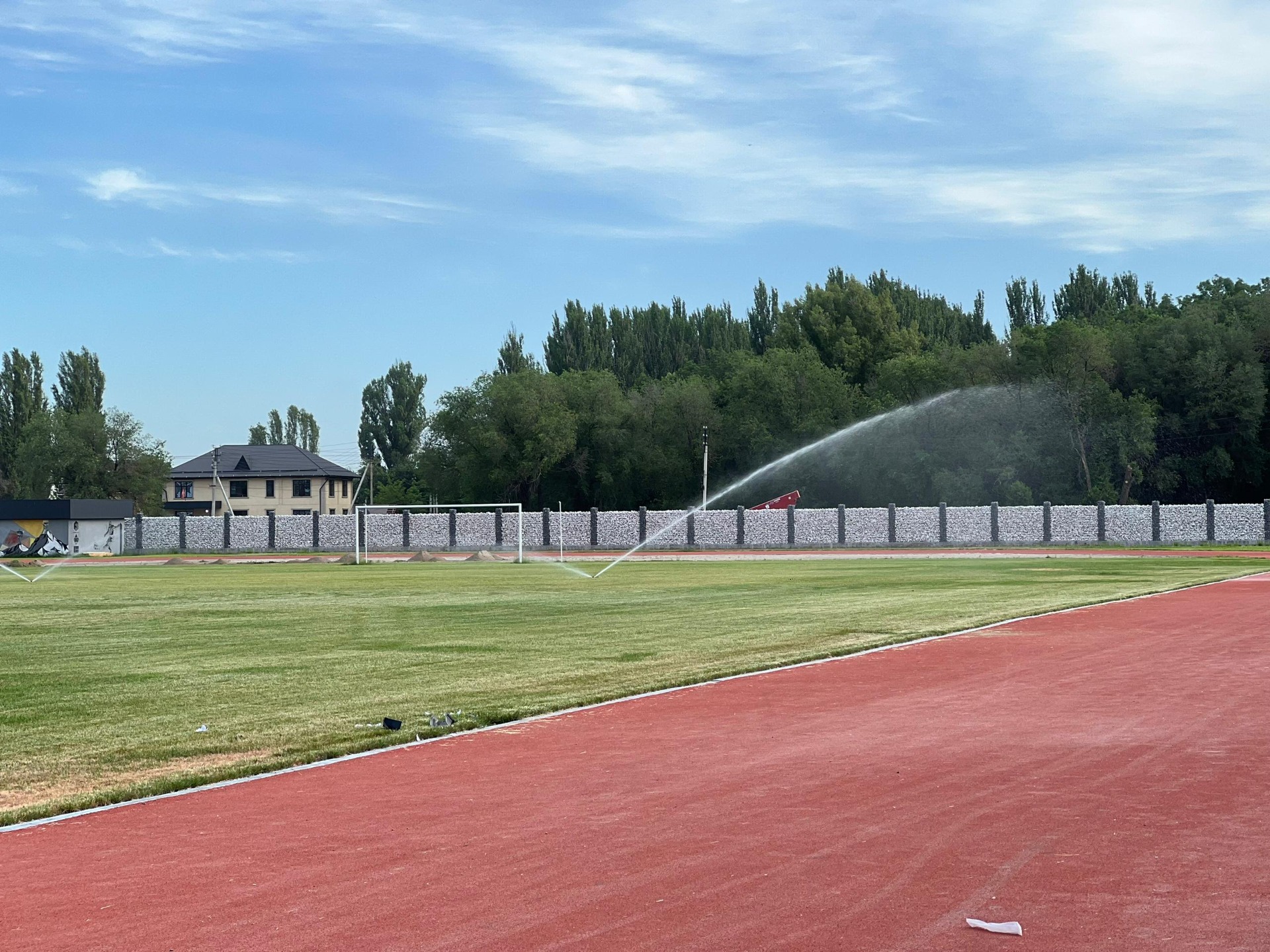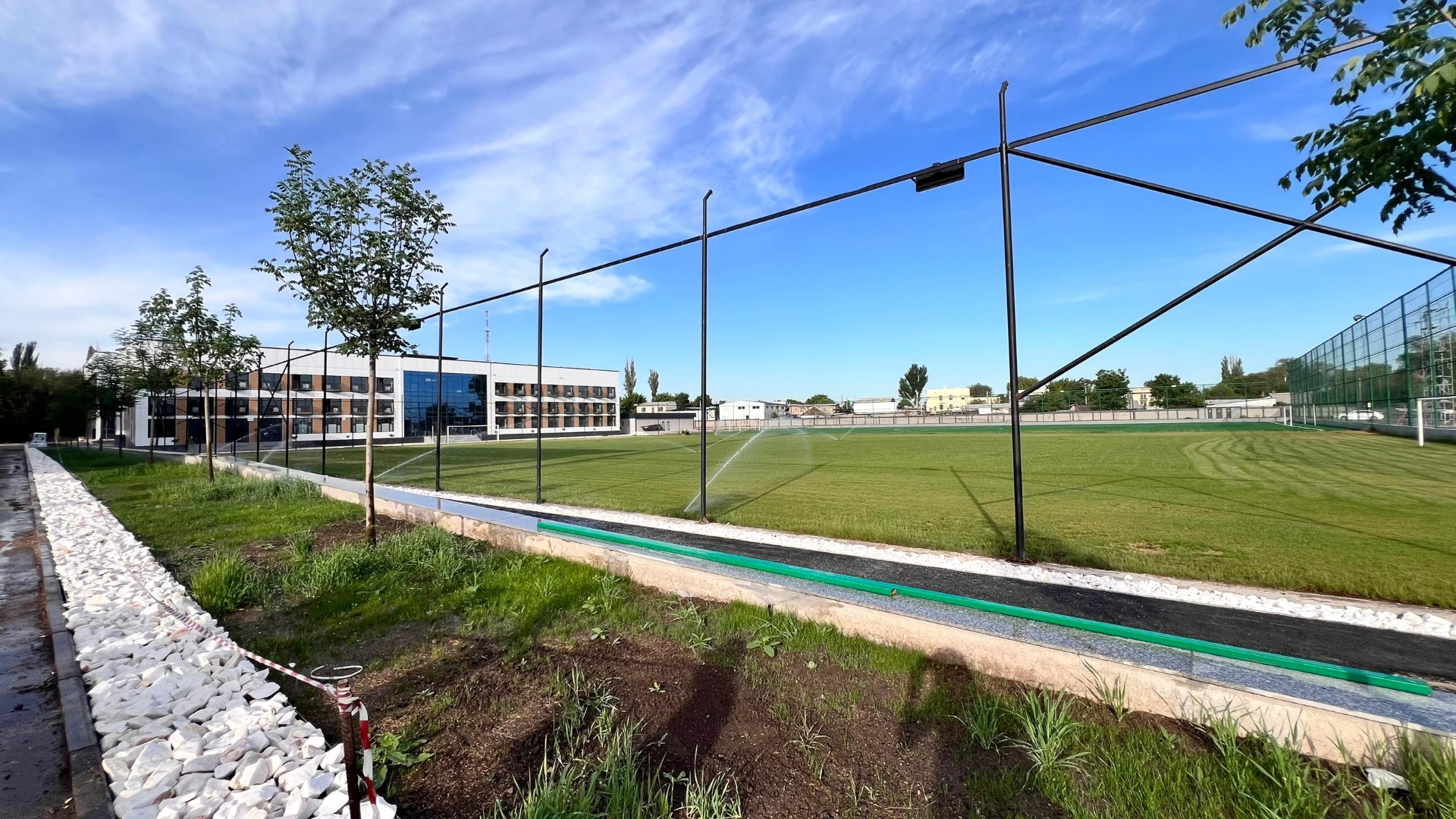 Футбольный стадион общей площадью территории 7,4 гектара рассчитан на 3 тысячи мест. В комплексе предусмотрены два тренировочных поля и спортивные площадки, трехэтажная гостиница на 142 места и физкультурно-оздоровительный комплекс.В настоящее время завершены основные работы по строительству футбольного поля категории FIFA-4, тренировочных площадок, парковки и установке системы освещения.