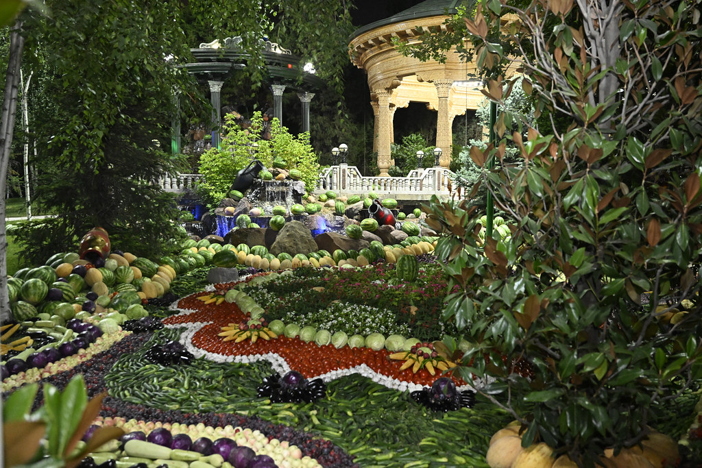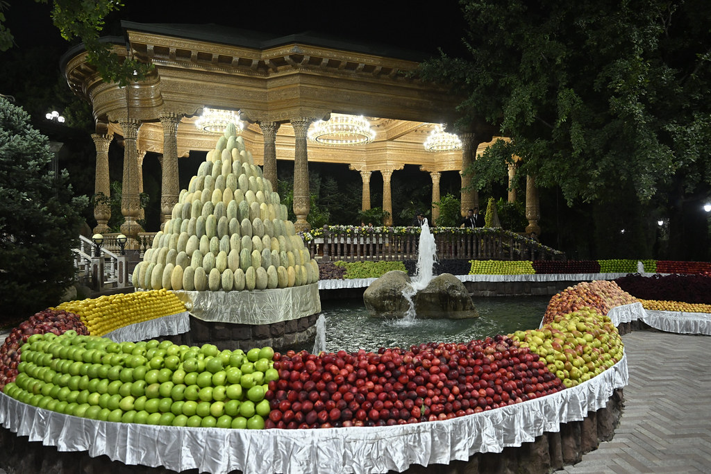 Главы государств осмотрели выставку сельхозпродукции — фрукты, овощи, сухофрукты и блюда национальной кухни, представленные в оригинальной форме.