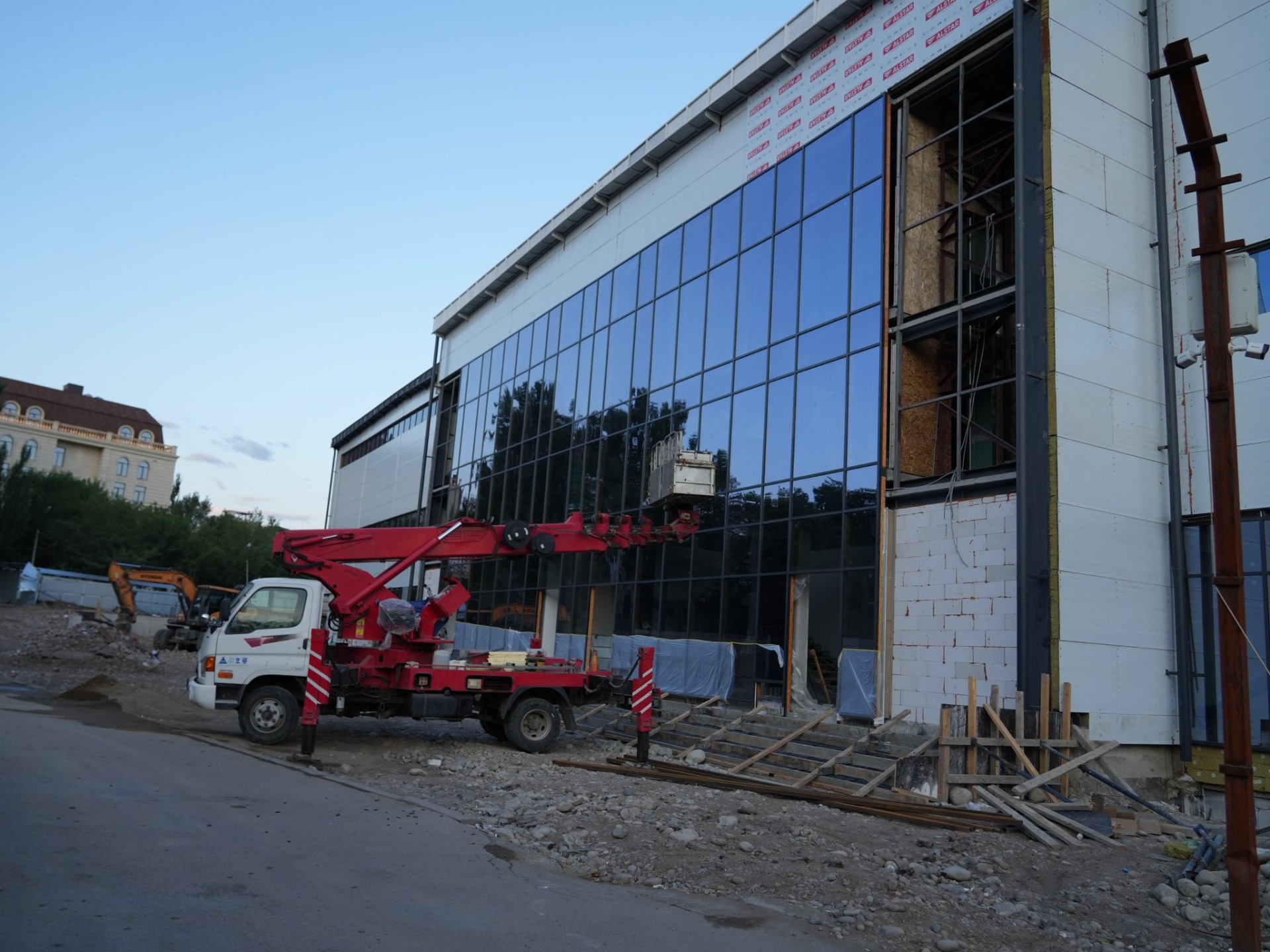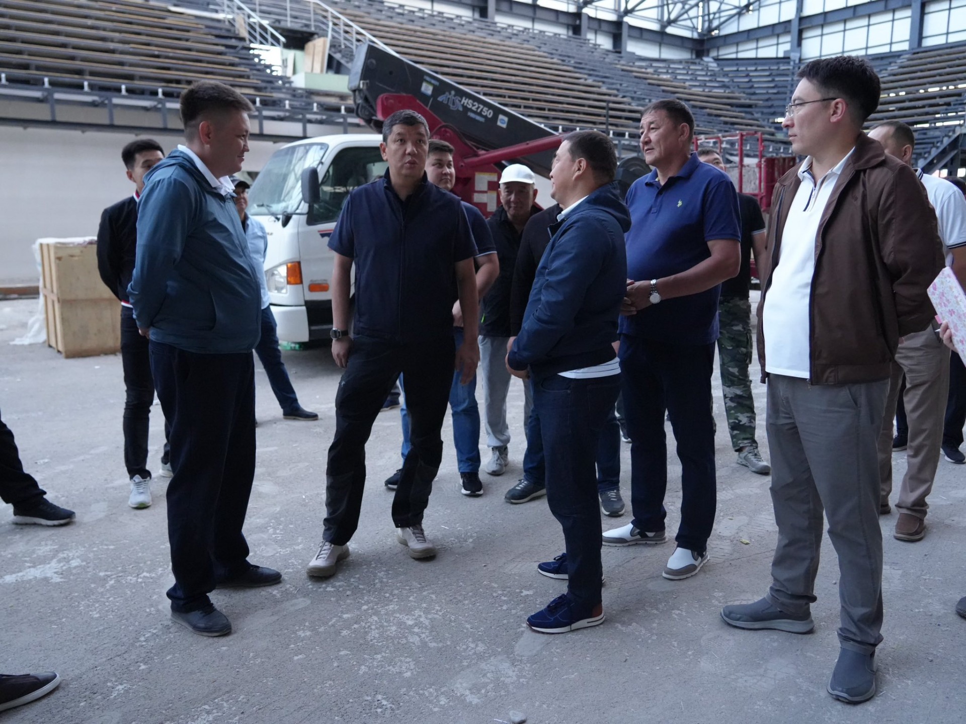 Мэр города Бишкек Айбек Джунушалиев ознакомился со строительными работами малой спортивной арены стадиона имени Долона Омурзакова на более чем 5 тысяч зрительских мест с подвальным помещением по улице Тоголока Молдо.