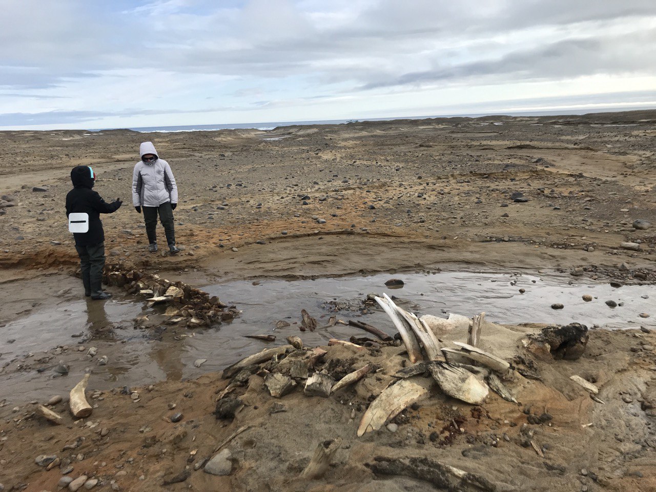 «Сравнив современное положение ледника с данными космических снимков, мы пришли к выводу, что менее чем за 20 лет ледниковый купол острова разделился на две части, обнажив поверхность площадью в несколько квадратных километров. На вышедшей из-под ледника морской террасе в большом количестве обнаружены кости китов. Некоторые скелеты, вытаивающие из мерзлоты на периферии ледника, характеризуются хорошей сохранностью», — рассказал научный сотрудник Никита Демидов.