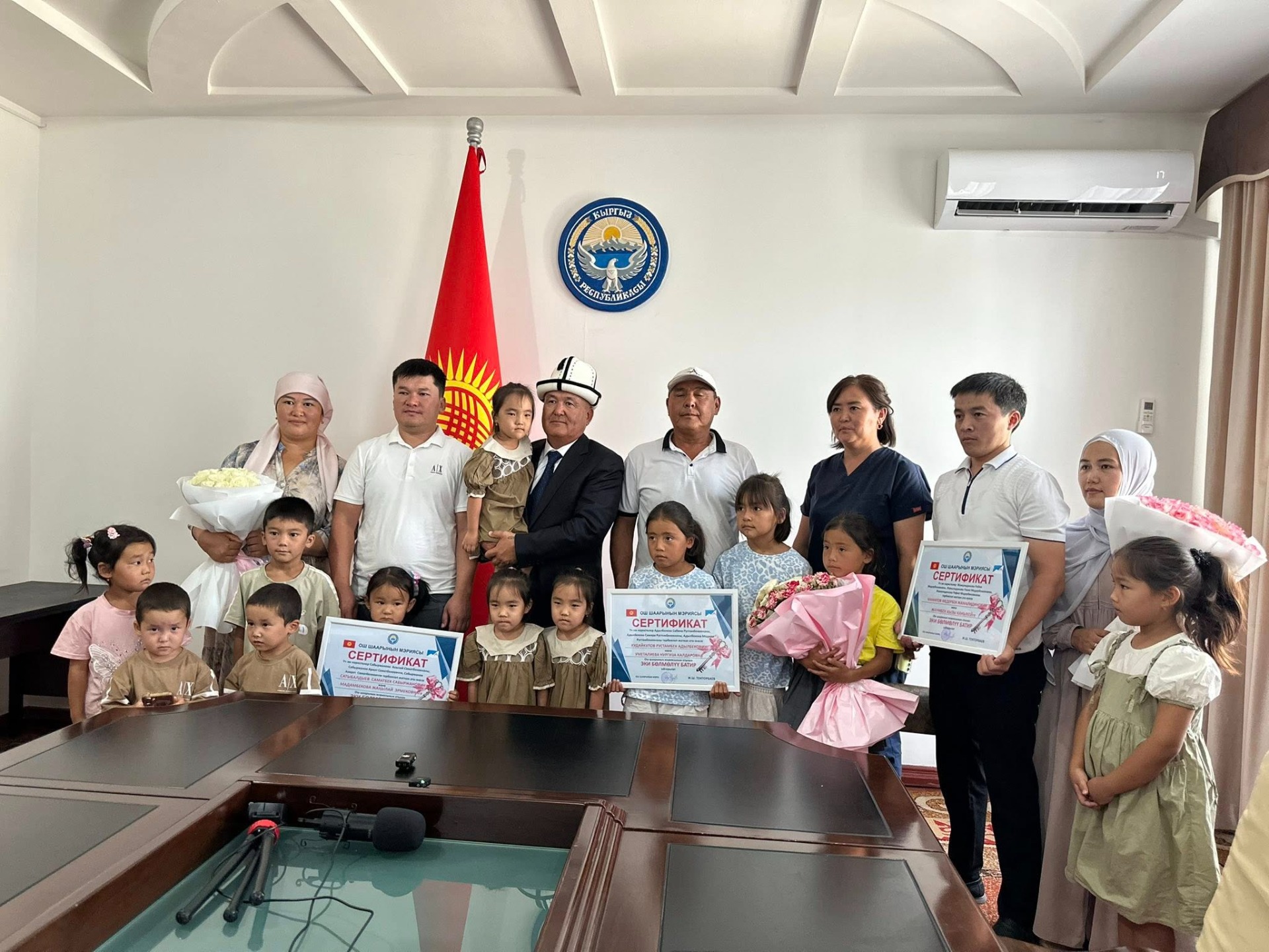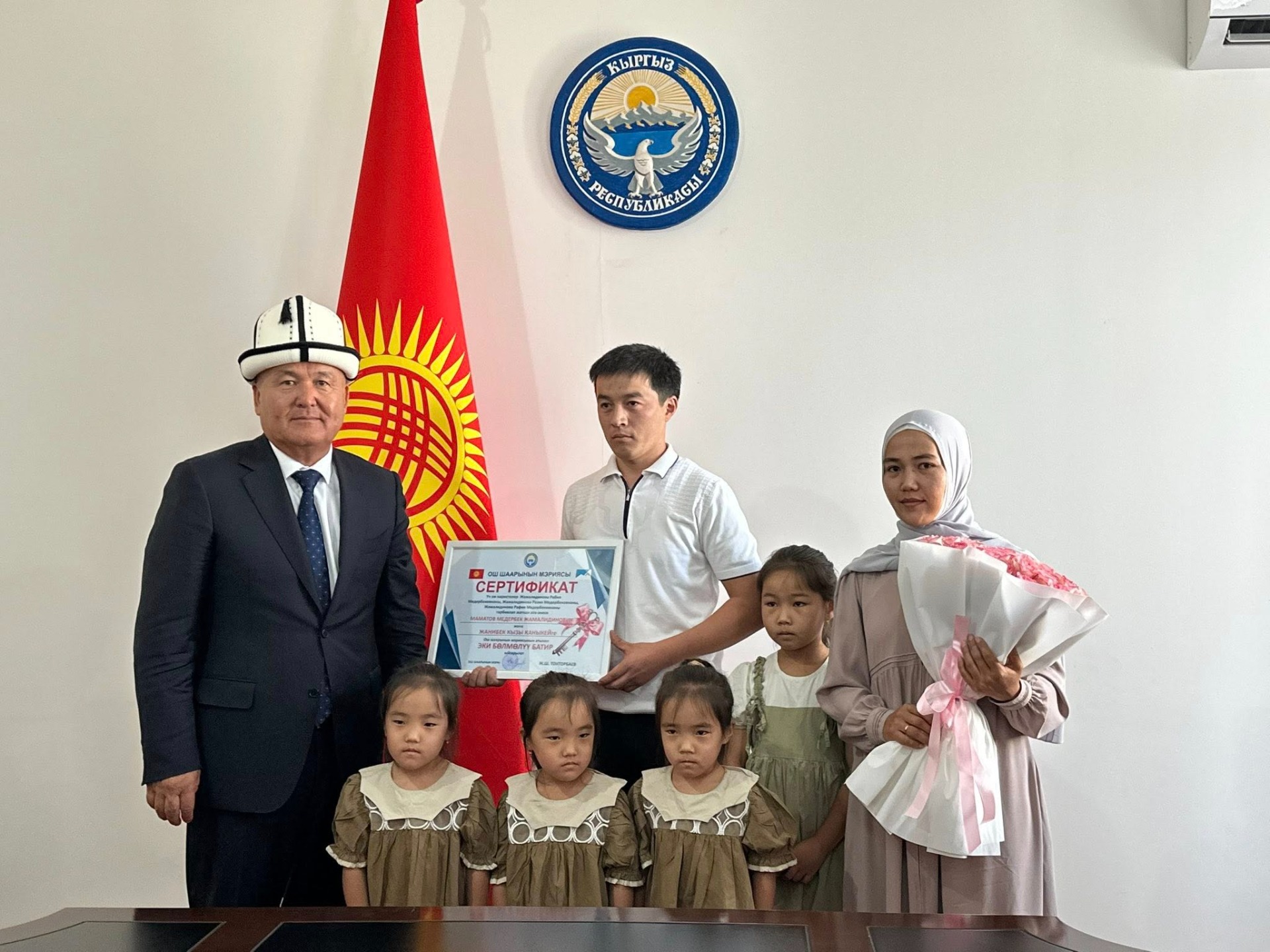 Ранее, мэр Оша уже вручал квартиры семьям. Так он подарил квартиру площадью 100 квадратных метров семье с шестью детьми и две трехкомнатные — двум семьям с тройняшками.