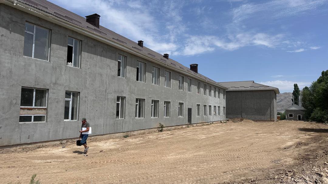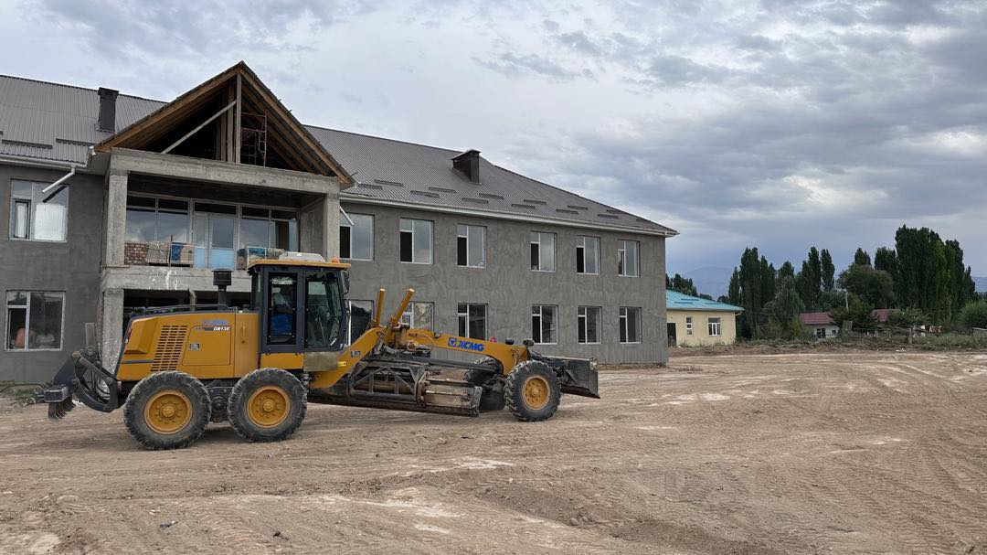 В селе Кара-Суу Таласской области строят школу имени Айтбаева, завершение которой откладывалось много лет. Об этом сообщает Минстрой.
