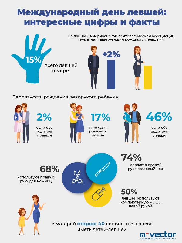 Согласно статистическим данным, от 3 до 10 процентов населения Земли — левши.