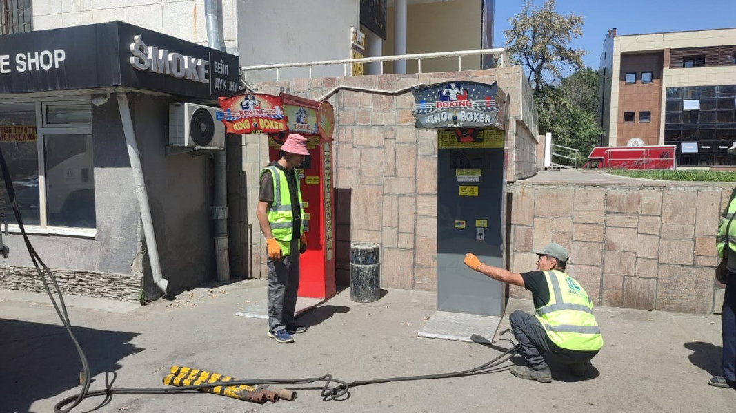 - На проспекте Ч.Айтматова произведен демонтаж торговых точек и конструкций: 4 ударника, 4 точки по продаже мороженого, 18 железных ограждений.